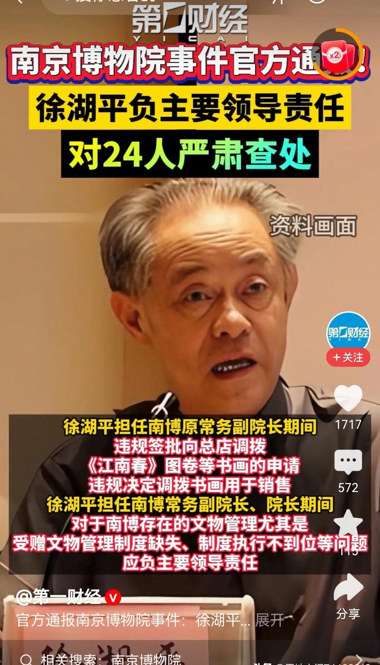 南京博物院事件出调查结果了,粗略看了一下通报,大概意思就是,20多人被处理,已属顶格处理,该事件不宜再扩大了。经过这么一折腾,南京博物院里还有多少真迹,恐怕会很多人跟我一样,心里大大的问号? 官方通报已坐实核心问题,南京博物院长期存在制度缺失、管理混乱,违规调拨、账物不符、私自买卖文物等乱象,这样的状态足以让每一个文保爱好者揪心。 此次涉事人员共29名,5人因去世不予追究,24人被依规依纪依法查处,涉嫌犯罪者移送司法,力度被称顶格,却没能抚平公众心底最深的疑虑。 南京博物院是国家一级博物馆,馆藏文物超43万件,是国内顶尖的文化殿堂,殿堂内部失守,击穿的是整个文博行业的公信力。 公众质疑的从来不是处理结果,而是多年管理失序下,馆藏文物的真实处境,那些不可再生的千年瑰宝,究竟有没有得到妥善守护。 文物是民族的根与魂,一件损毁便永久消失,它们的安全没有试错空间,更不允许出现任何形式的监管空白与责任真空。 通报里的“账物不符”四个字,直接戳中信任痛点,藏品账目与实物对不上,没人知道缺口有多大,也没人清楚隐患藏在哪里。 南京博物院已发布致歉信,态度看似诚恳,可公众最期盼的完整馆藏核查清单、受影响文物明细,始终没有全面清晰地对外公开。 从省级监管部门到博物院一线岗位,责任链条层层失守,这样的系统性崩塌,绝不是处理几十个人就能彻底修复的。 顶格处理只能清算过往,无法挽回已经造成的损失,更不能自动补上制度漏洞,文物安全从来都需要长效机制牢牢托底。 南博本是全国博物馆的标杆,标杆出现裂痕,会让民众对各地馆藏文物的安全都产生怀疑,连带伤害整个行业的口碑。 文物守护容不得半点水分,博物馆向公众开放展厅,更该向阳光开放管理流程,暗箱操作只会不断滋生新的乱象。 这场风波源于捐赠文物管理失控,最终扯出馆藏监管的巨大漏洞,这不是偶然失误,是长期漠视规则的必然结果。 民众愿意相信文博人的初心,更期待看到刮骨疗毒的决心,回避核心问题、只做表面整改,只会让猜测与质疑持续蔓延。 文物安全是不可触碰的红线,任何敢打国宝主意的人,都该被严惩,这是对历史负责,也是对亿万国人负责。 整改不能停留在文件里,道歉不能只挂在官网上,全面盘查、公开数据、压实责任,才能一点点挽回破碎的信任。 博物馆的真正底气,从来不是宏伟建筑,而是能守住每一件文物,能让参观者心怀敬畏,而不是满是怀疑。 当文化殿堂失去透明,当守护责任沦为空谈,再厚重的历史,也填不满民众心里那个悬而未决的问号。 只有彻底公开、全面彻查、终身追责,才能让南博重回正轨,才能让国人相信,国宝始终被妥帖安放、用心守护。 各位读者你们怎么看?欢迎在评论区讨论。