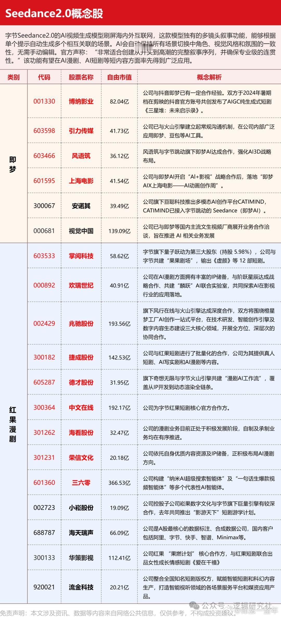 A股 Seedance 2.0概念股梳理