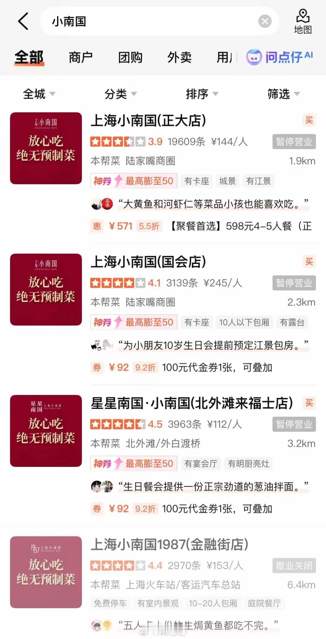 小南国也集体下线了只是下线不怎么体面,年夜饭的定金,用户的储值卡里的余额,统统都没了在上海的朋友肯定了解小南国,当年算是一个吃本帮菜,口味和环境都还算不错的地方,物是人非,让人唏嘘不已。上海小南国