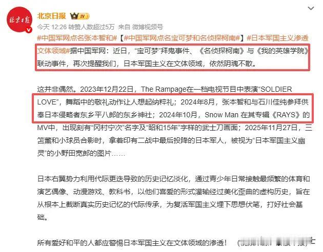 军网点名宝可梦拜鬼、名侦探柯南和张本智和等军国主义通过文娱产业持续渗透,这一次要