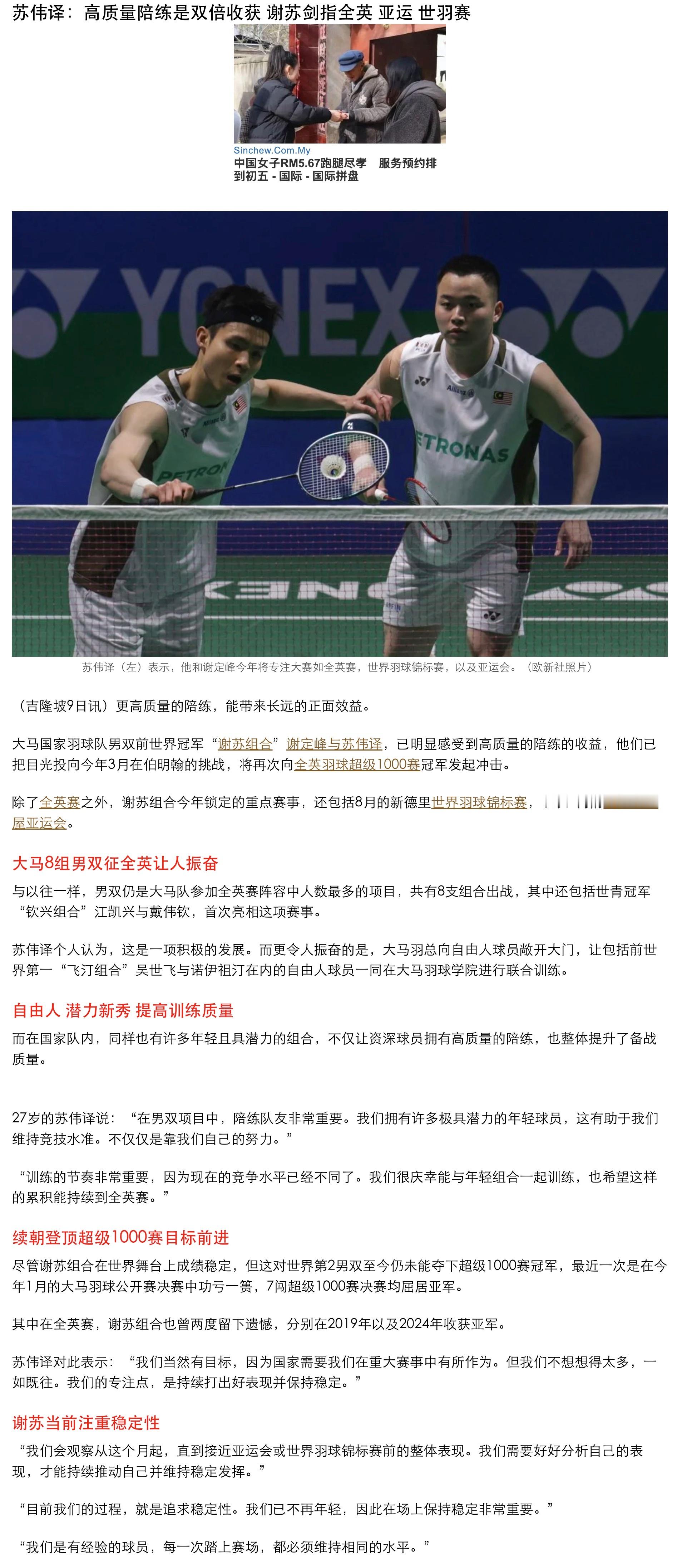 【高质量陪练是双倍收获,谢苏剑指全英、亚运、世锦赛】
