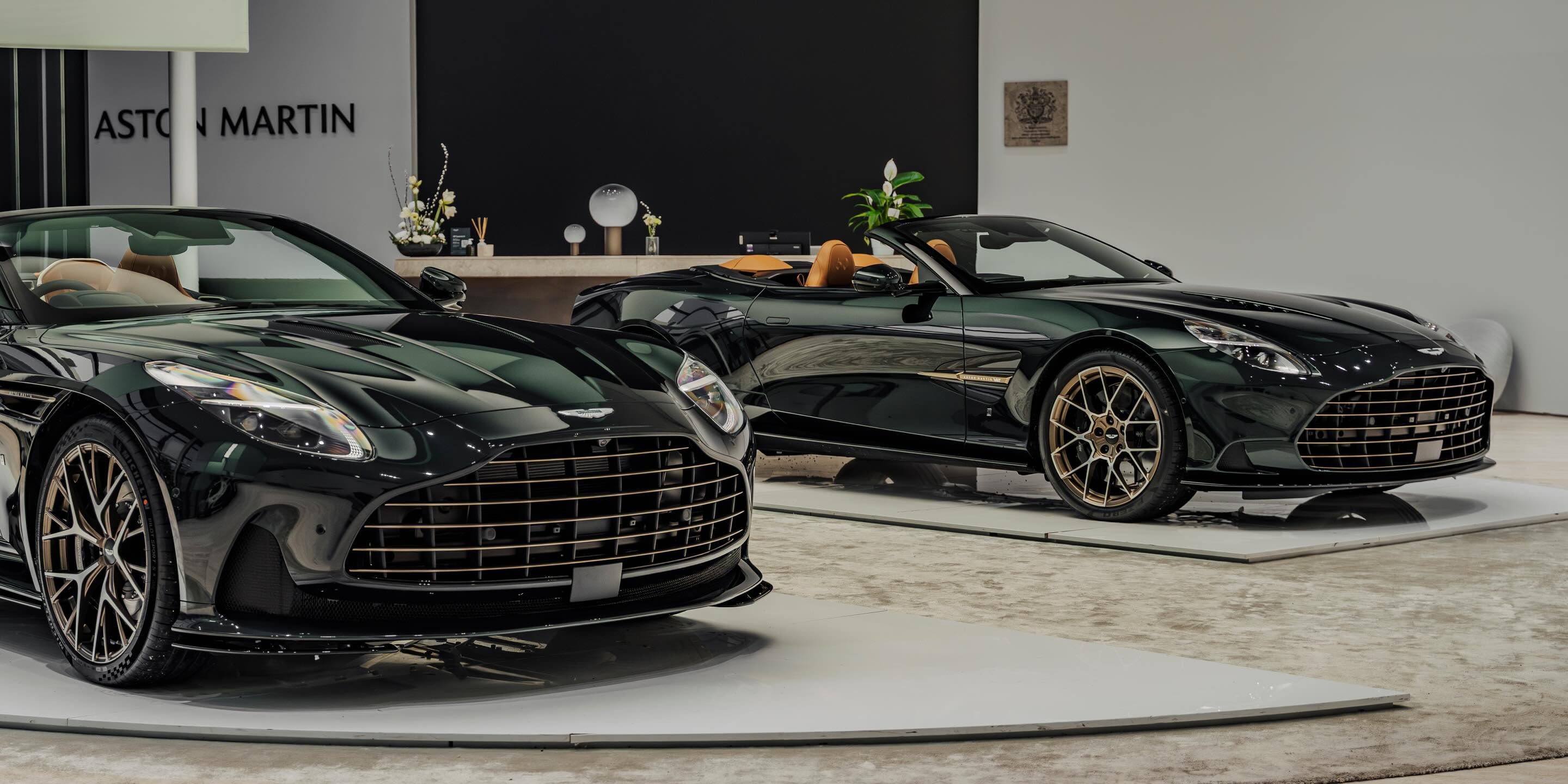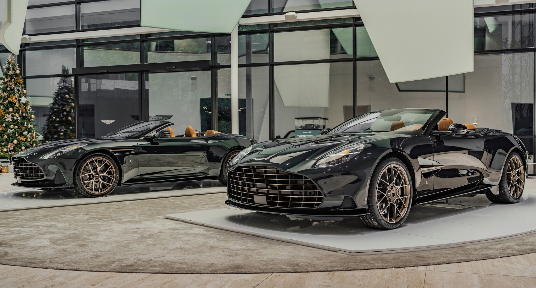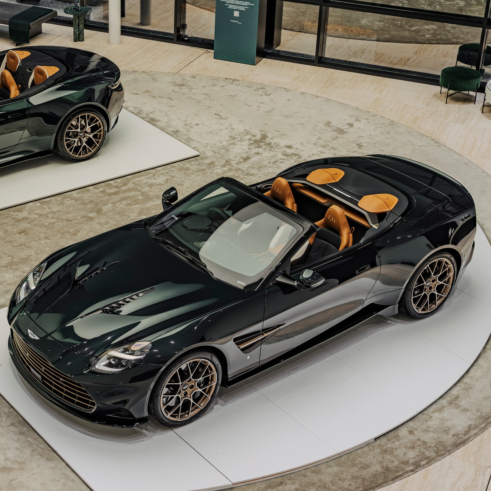 Q by Aston Martin Vanquish Volante 60 Anniversary & DB12 Volante 60 Anniversary阿斯顿马丁astonmartin阿斯顿马丁vanquish阿斯顿马丁db12 这两台60周年纪念款车型的搭配太有格调了!马丁和木纹太契合了!