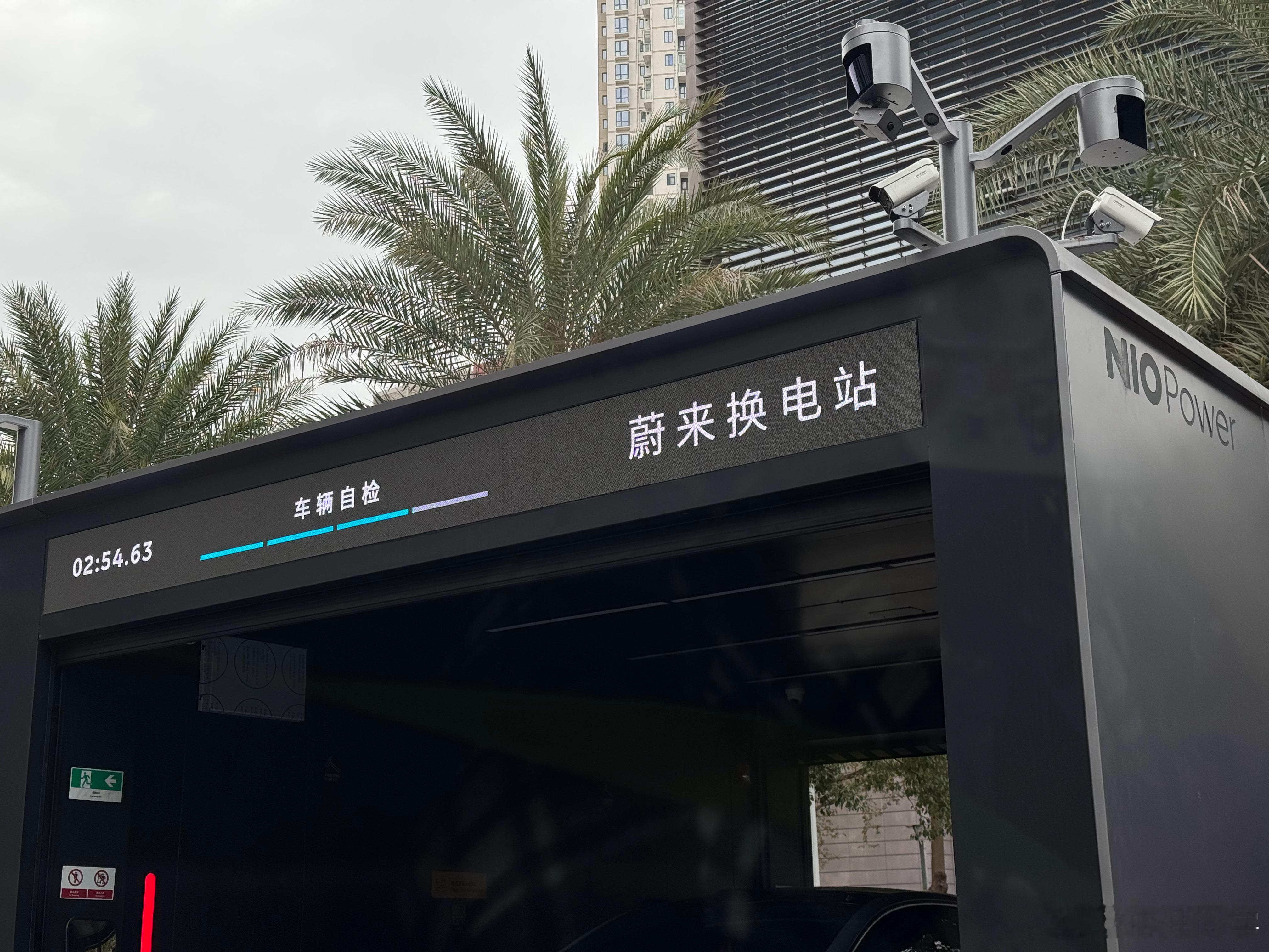 我之前没留意原来蔚来换电站上面还有块小屏幕,显示当前车辆的换电进度条不过我觉得对下一个换电车主来说也无所谓了,总共就三四分钟也干不了什么事。