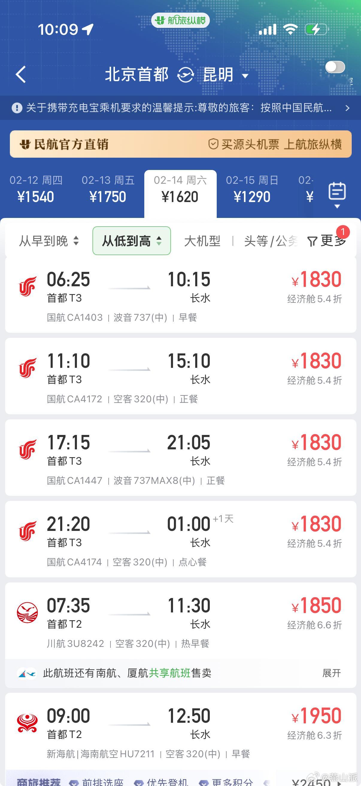 到现在还没抢到回家车票的朋友,可以去看看机票,今天机票的价格和前段时间相比降了不少,以北京到昆明为例,前段时间看基本在2500左右,现在降到了1800左右。