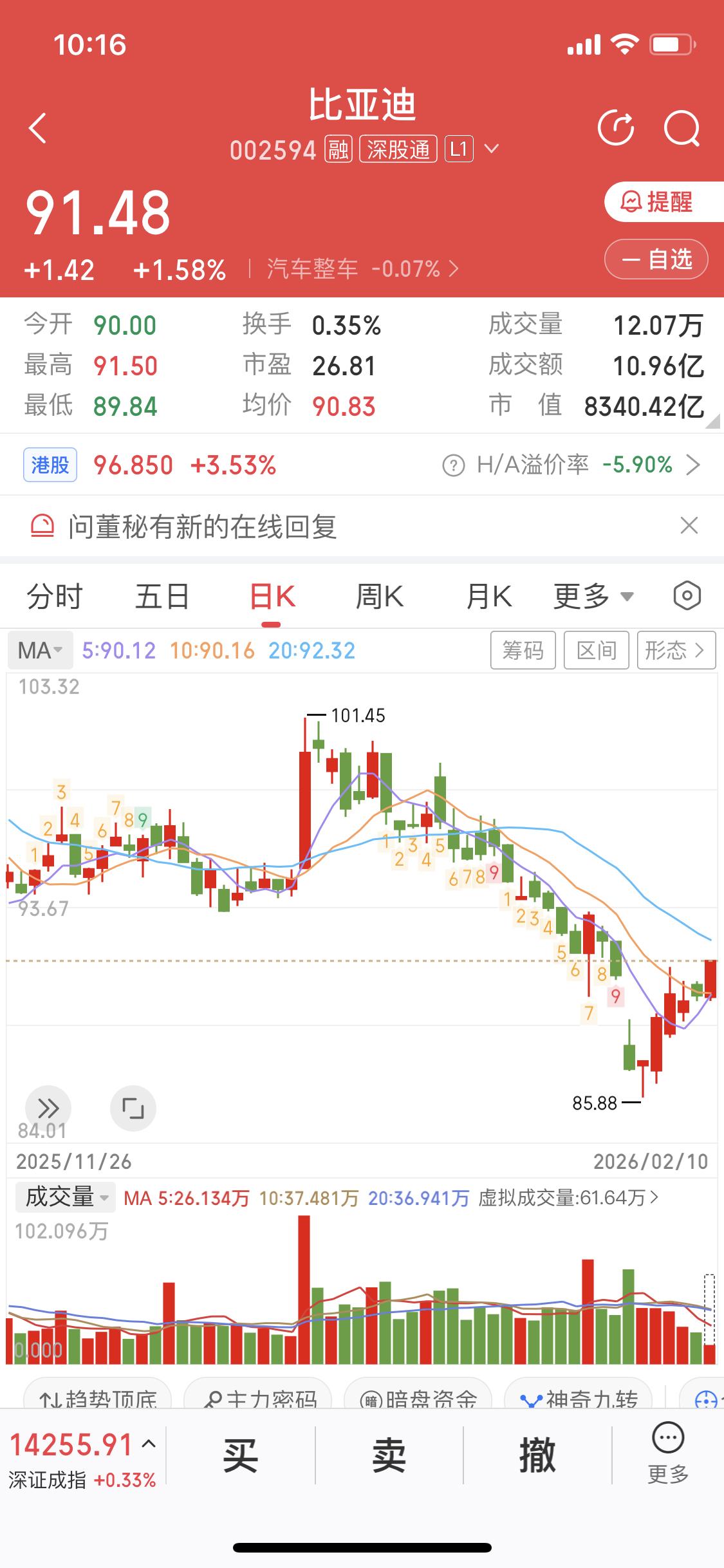 2月10日比亚迪股票表现亮眼,大涨1.5个点,还实现了五连阳。当天A股强势上攻,沪指、创业板指等都大幅上涨,汽车产业链股崛起。 更值得关注的是,2月10日晚比亚迪在深圳总部召开智能化战略发布会,发布“天神之眼”高阶智驾系统。董事长王传福称要通过全民智驾战略加速智驾普及,实现高阶智驾全覆盖。该系统分三个版本,比亚迪全系车型将搭载,10万级及以上全系标配,首批涉及21款车型。看来比亚迪这是在智能化转型上大步迈进,股票的连续上涨或许也是市场对其转型的认可。
