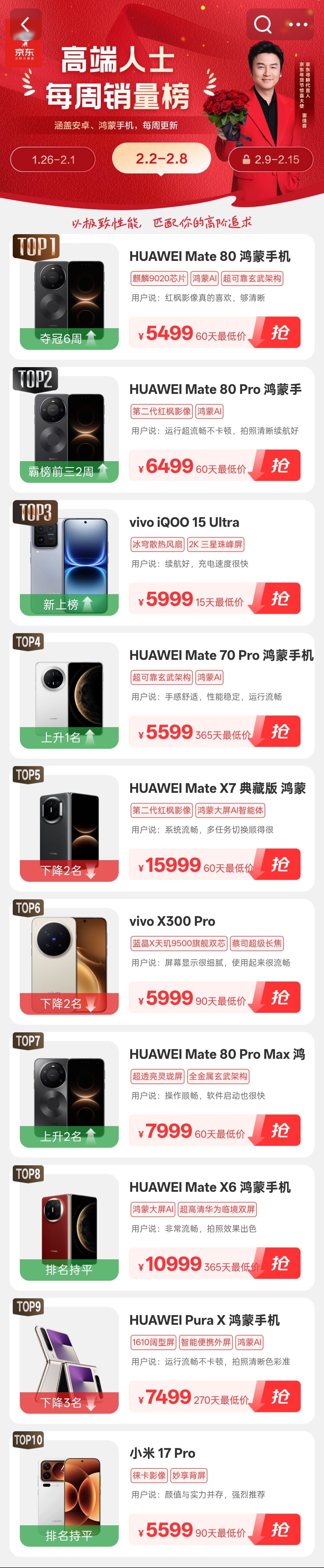 看了一下京东高端手机的销量,iQOO 15 Ultra都干到前三了,市场已经给出答案,这款旗舰确实被用户认可