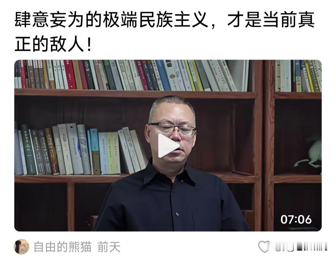 谁是我们当前真正的敌人?是肆意妄为喧嚣网络的极端民族主义!难得看到敢说真话实话的人!这位网友算一个。 现在网上的狭隘民族主义,真的十分喧嚣狂热!代表人物是某些网红大V,打着“爱国旗号”,释放排外言论,这个是威胁,那个是敌人,搞得满网风雨。 忽悠一些朴素爱国者,加深对某些“有政治分歧”“经贸争端”国家的仇恨,整天喊打喊杀,闹得网络乌烟瘴气。以此圈粉赚流直播带货,赚的盆满钵流。 这种极端民族主义喧嚣,危害极大。 比如张院长说一小时摧毁11艘航母。 比如房教授说和老美同会石器时代。 比如沈教授说台湾殖民地打就是了! 这些不计后果的言辞,很痛快很提气,赢得网拳一片欢呼!但会让老美什么感受?会让台湾人民什么感受呢? 近几年中美经贸出现问题,老美对我们产生警惕,是否和这些“网络战狼”狂放言辞,网拳的雀跃喧嚣有关呢? 还有台湾问题,统一是必然!但国家再三声明:两岸都是炎黄子孙,大陆愿与台湾充分协商,实现和平统一! 最后总结一句话:我们当下都是敌人,不实这个那个,而是狭隘民族主义!它影响我们深化改革持续发展,阻挠两岸和平统一大业!应当予以警惕! …………