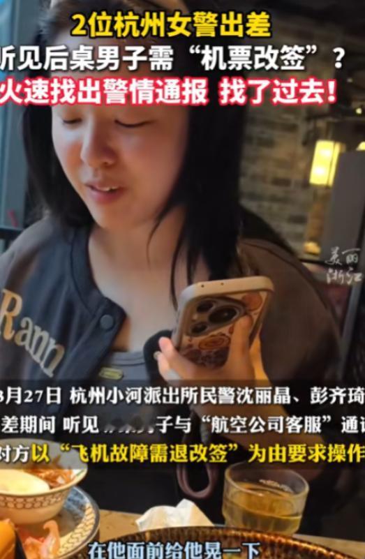 两名女警立大功!近日广州,2名杭州女警出差就餐时,无意间听到后桌男子与”航空公司客服“通话,得知飞机故障需要退改签,女警瞬间警觉这是一场诈骗,随后一个举动,反诈成功! 这两名女警分别是沈丽晶和彭齐琦,平日里都在杭州公安系统工作,这次一同前往广州执行出差任务,忙完手头的日常工作,两人便想着找家餐厅歇歇脚、吃点东西。 晚上的市区格外热闹,她们选了一家家常菜馆,找了个靠窗的位置坐下,点了几道当地的特色菜,打算边吃边简单梳理下后续的工作安排。 刚吃没多久,邻座一位小伙长时间的通话引起了她们的注意,一开始只是隐约听到“飞机故障”“改签”这样的字眼,可越听越不对劲,职业敏感一下子就提起来了——这分明就是她们日常反诈宣传中反复提醒的退改签诈骗套路! 小伙在电话里跟对方聊了挺久,语气里带着点着急,大概是担心耽误行程,已经开始询问对方该怎么办理改签手续了。 沈丽晶和彭齐琦对视一眼,心里立刻有了判断,她们平时就负责反诈工作,还是分局反诈IP“蛋警官”的主理人,见过太多类似的骗局案例,杭州公安公众号也专门发过相关提醒。 两人赶紧掏出手机,找到那篇蓝底白字的反诈提示,没有贸然打断小伙通话,怕引起反感反而耽误事,而是发挥“社牛”属性,直接起身把手机屏幕递到小伙面前。 小伙低头一看,瞬间就明白了,愣了一下后立马笑着说了句“谢谢”,当场挂断了电话。 随后他按照提示,立刻拨打了航空公司的官方热线核实,果不其然,客服明确告知根本没有飞机故障这回事,让他不用理会之前的陌生来电。 虚惊一场的小伙,特意起身走到两位女警的桌边再次道谢,说对方讲得特别真,自己本来半信半疑,就怕耽误出行,幸好有她们及时提醒,不然真可能被骗了。 彭齐琦还跟他总结了个好记的关键点:真航空公司只会让你“稍等”,骗子才会催着“快快快转保证金”,真改签在官方APP上点一点就行,假改签只会让钱包瘦三圈。 这件事看着是偶然,其实全靠两位女警的职业敏感和责任心,出差在外还没放下反诈的弦,一个简单的“递手机”举动,就帮小伙躲过了一场损失。 而这种退改签诈骗,现在真是越来越猖獗,骗子太会抓人的心理了,专门挑出行前大家着急赶路的时候下手,用“航班取消”“飞机故障”“可以理赔”这些说法制造焦虑,让你在慌乱中跟着他们的节奏走。 更可恨的是,骗子还能准确报出你的姓名、航班号这些信息,一下子就降低了人的警惕心,其实这些信息都是他们非法获取来的。 接下来就开始设套,要么让你下载陌生APP,要么让你登录钓鱼网站,还有的会诱导你开启屏幕共享,趁机偷看你输入密码、验证码,甚至远程控制你的手机,等你反应过来,钱已经被转走了。 有的骗子还会用“影响征信”“账户冻结”这种话恐吓你,尤其是中老年人,一听征信受影响就慌了神,更容易被骗。 其实这种骗局的漏洞很明显,正规的航空公司办理退改签,只会在你购票的官方平台操作,钱也会原路退回,根本不会让你下载陌生软件、开通什么对公收款功能,更不会要你的验证码和支付密码。 那些催着你“抓紧时间”“就这一会儿有效”的,百分百是骗子,他们就是怕你多想、怕你去核实,才一个劲地催你赶紧操作。 沈丽晶和彭齐琦的做法特别值得点赞,她们没有生硬地阻止,而是用最直接的方式让小伙看到官方提醒,既给了对方面子,又起到了提醒作用。 这也告诉我们,遇到疑似诈骗的情况,能搭把手就搭把手,也许你的一个小举动,就能帮别人避免很大的损失。 而我们自己遇到这种情况,首先别慌,不管对方说得多么逼真,先挂断电话,自己通过航空公司官网、官方APP或者官方客服电话核实,陌生链接坚决不点,不明APP坚决不下,验证码和密码绝不给任何人。 现在诈骗分子的套路越来越多,但万变不离其宗,都是利用人的贪心或者焦虑心理。只要我们保持警惕,不轻易相信陌生人的“好消息”和“坏消息”,凡事多核实,就不会让骗子有机可乘。 两位女警在出差途中还不忘反诈,用实际行动守护群众利益,这种责任心和专业度真的让人感动。 也希望大家都能把反诈意识记在心里,不仅自己不上当,遇到别人可能被骗时,也能像这两位女警一样,及时伸出援手,让诈骗分子无处遁形。