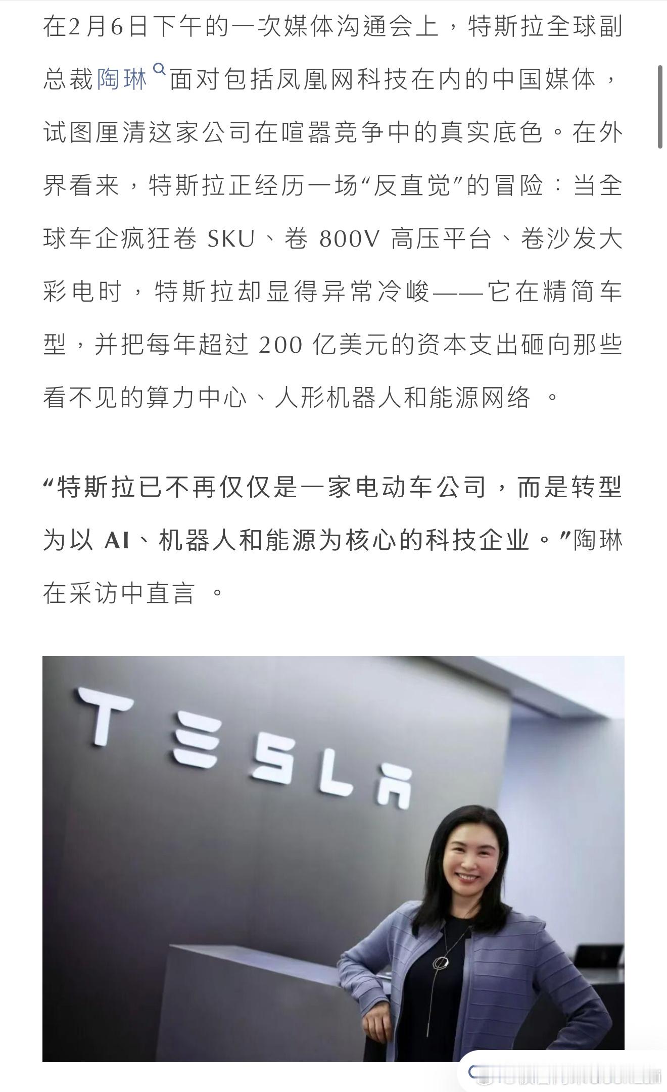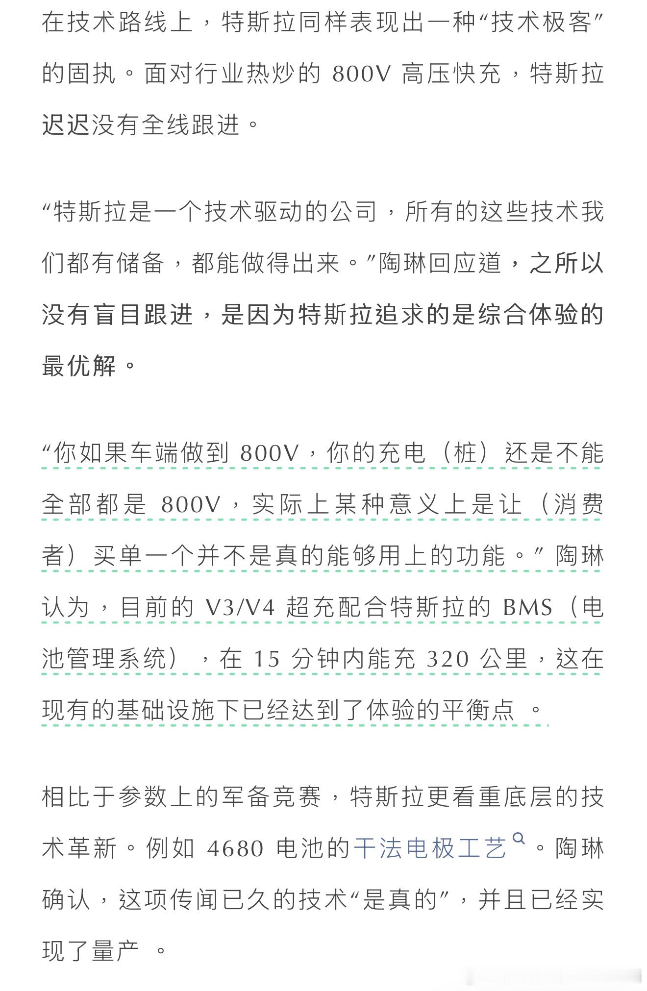 2月6日特斯拉的一次媒体沟通会上,特斯拉全球副总裁陶琳讲了讲特斯拉的近况、为什么还没有上800V以及4680电池技术的最新进展以及FSD在中国的推进,干货蛮多的推荐阅读《对话陶琳:特斯拉如何应对中国的“卷”》—凤凰网科技网页链接