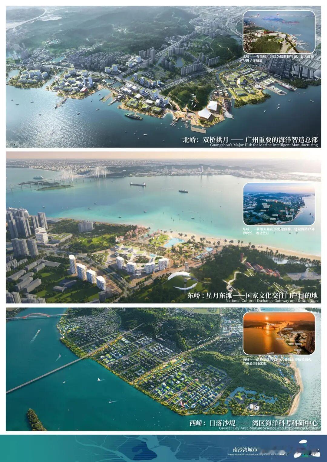 【南沙湾城市设计国际竞赛入选方案赏析】近日,“湾启未来・海韵新章”南沙湾城市设计国际竞赛专业组终评已圆满落幕! 6家由国内外知名设计机构组成的顶尖联合体同台竞技,历经资格遴选、现场调研、方案打磨等多轮考验,最终交出了一份份兼具前瞻性、专业性与落地性的城市设计答卷。 方案六:三峤耀湾 生息海城 设计单位:广东省城乡规划设计研究院科技集团股份有限公司+艾奕康有限公司(AECOM)+粤规院湾区(广州)规划设计有限公司联合体 设计方案:方案设计立足于存量时期的城市发展规律。借鉴全球“科创中城”经验,打造南沙湾三峤,从自然景观出发借力创能,构建“文旅带动服务、城区支撑科创”的新循环。 通过“借自然、借存量、借区域”的空间设计策略,形成“一脊三海峤,三岸三T台”的总体空间布局。 北岸智造T台以北峤“双桥拱月”支撑广州重要的海洋智造总部,通过一峤激活两湾,以文旅配套服务支撑产创功能,为海洋智造与总部企业提供服务。 南岸创研T台以西峤“日落沙堤”滋养湾区海洋科研与科考中心,通过“一街两湾”分期补齐海洋科研社区服务不足短板。 东岸海丝T台以东峤“星月东滩”叠加南沙国际邮轮母港推动国家文化交往门户目的地,通过构建连山接海的体验骨架,形成特色各异的开发自平衡单元,营造有温度的精致生活。