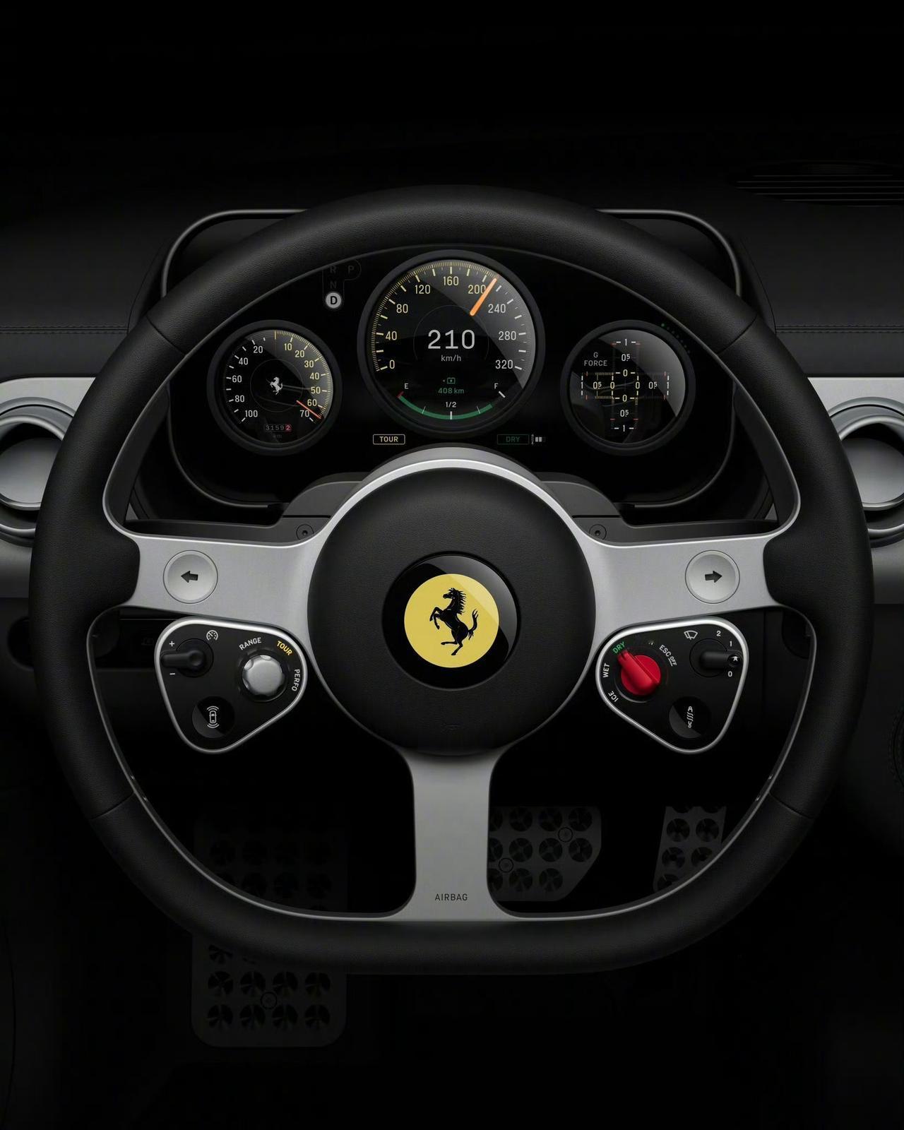 法拉利首款纯电车型内饰曝光!浓浓的“果味”你喜欢吗? 日前,法拉利公布了首款纯电跑车的内饰官图,有很浓厚的“果味”是因为前苹果传奇设计师乔纳森伊夫,深度参与了新车的内饰设计。 新车命名为LUCE,内饰将工业与科技风相结合,加入了大量有质感的实体按键。新车配备3块显示屏,但没有采用大尺寸屏幕,用恰到好处的尺寸确保用户可以直观查看信息。 内饰整体是以皮质面料和阳极氧化铝材质拼接而成,方向盘的造型致敬了50年代经典 Nardi风格的三辐方向盘,并由100%再生铝合金经CNC精密铣削而成,内饰设计完美诠释了复古+极简+科技三种风格。 大家觉得这款新车内饰的设计怎么样?欢迎在评论区留言!【来自懂车帝车友圈】