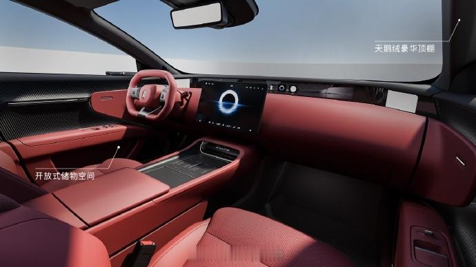 新阿维塔12这内饰设计真的挺高级,前排配备开放式储物空间,使用天鹅绒豪华顶棚;