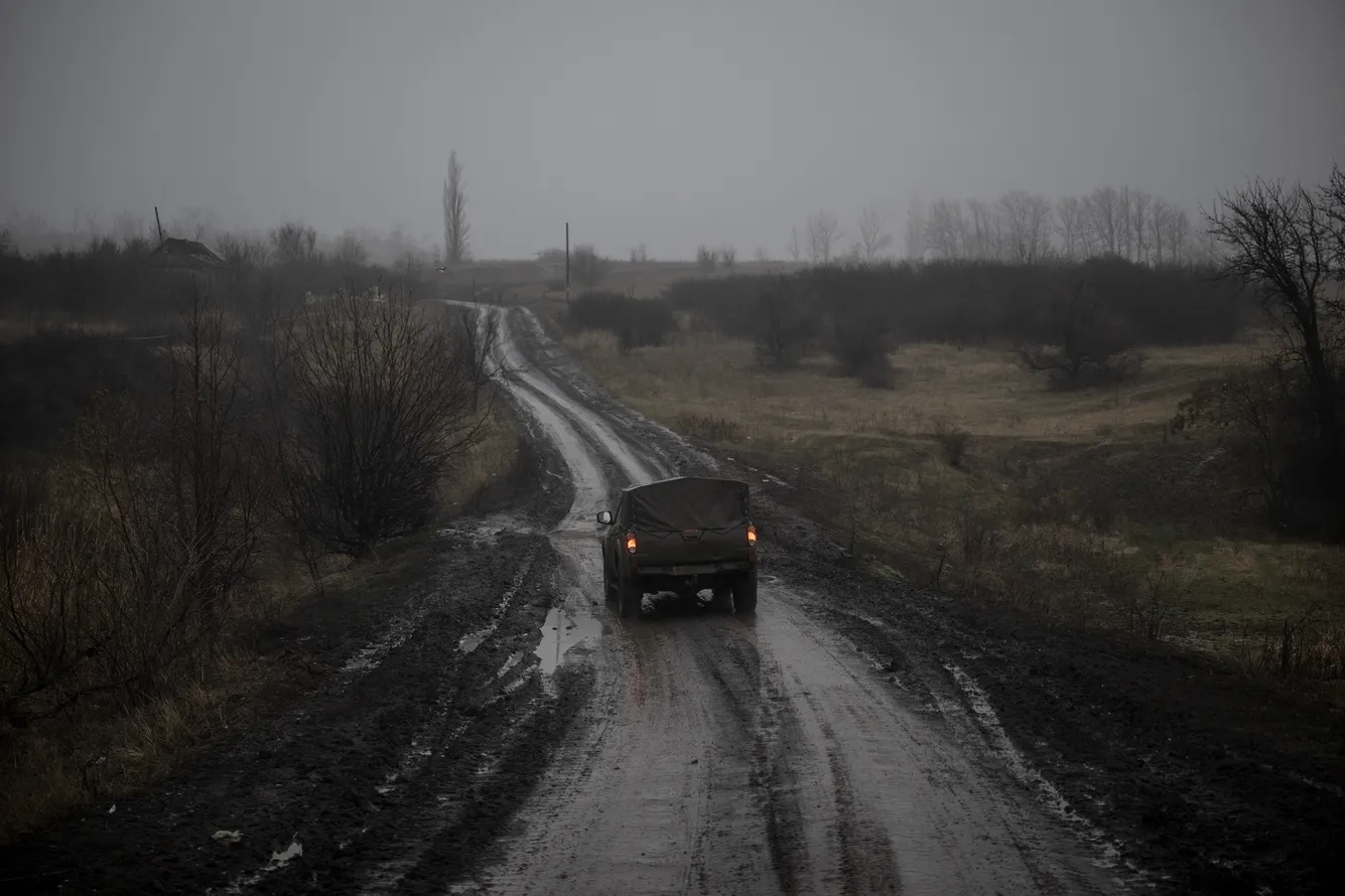 2024年1月,一辆军车沿着乌克兰巴赫穆特附近前线附近的道路行驶。