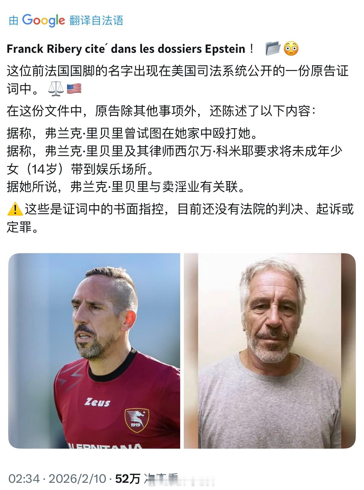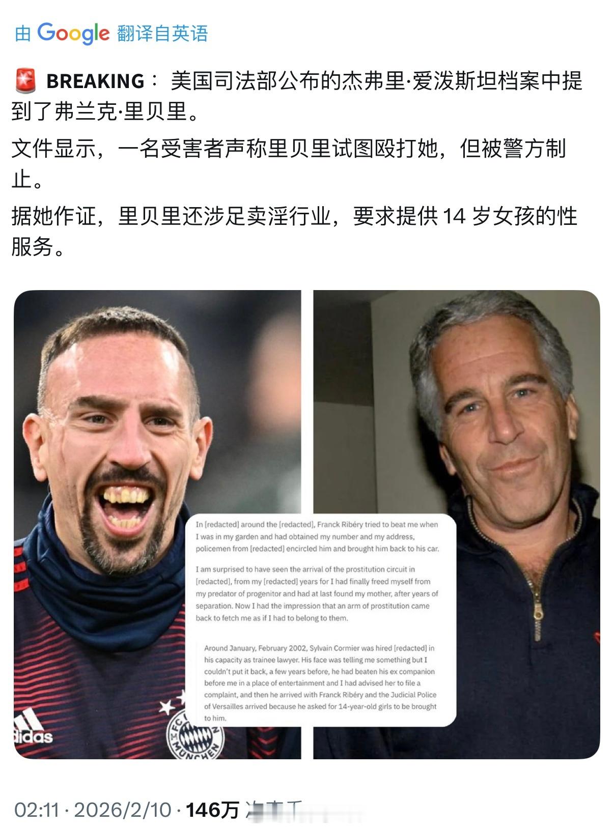 法国前国脚里贝里的名字出现在爱泼斯坦档案