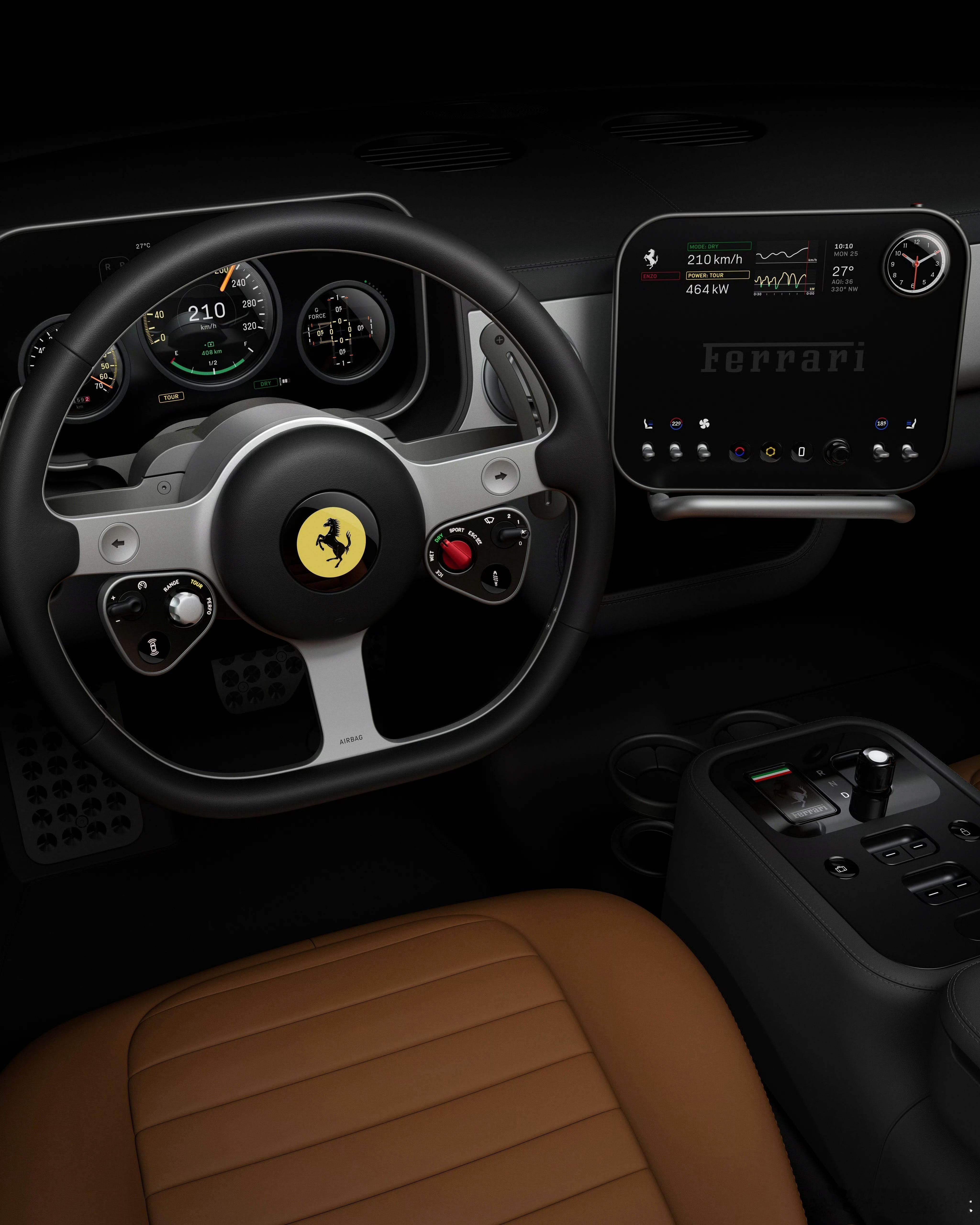 跃马徽标的配色给整个设计点睛之笔,又有经典元素又有新奇的点子,内饰由前苹果首席设计师Jony Ive公司LoveFrom联合打造,很新奇的就是虽然实体按键多,但是看着就是简约设计,也没有什么大屏堆砌