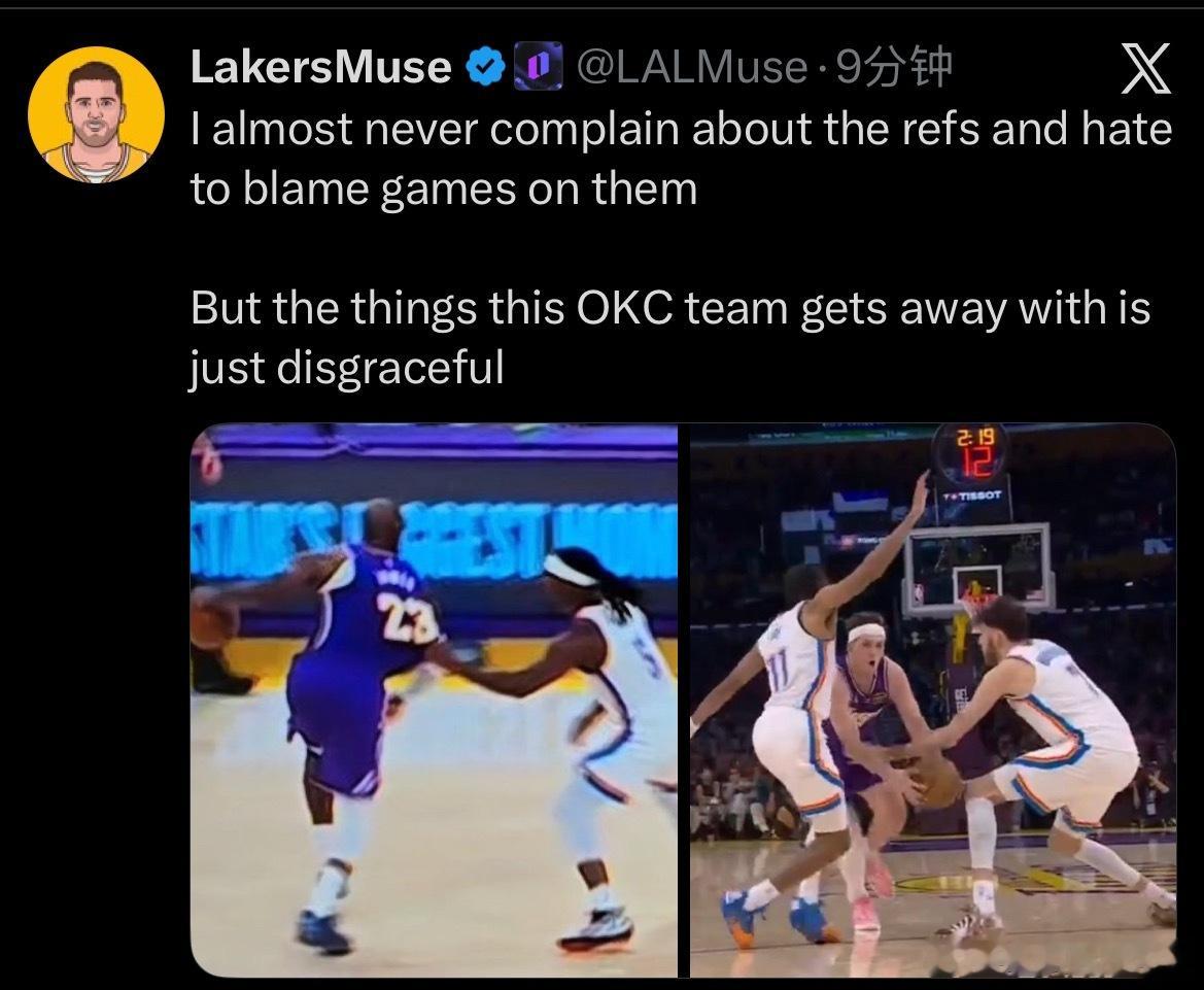 但这支雷霆队能这么肆无忌惮地在判罚上占便宜,简直太离谱了。”雷霆战胜湖人