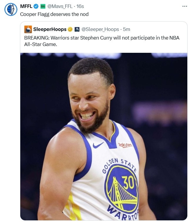 独行侠自媒体MFFL发文写道:“弗拉格值得这个名额。”