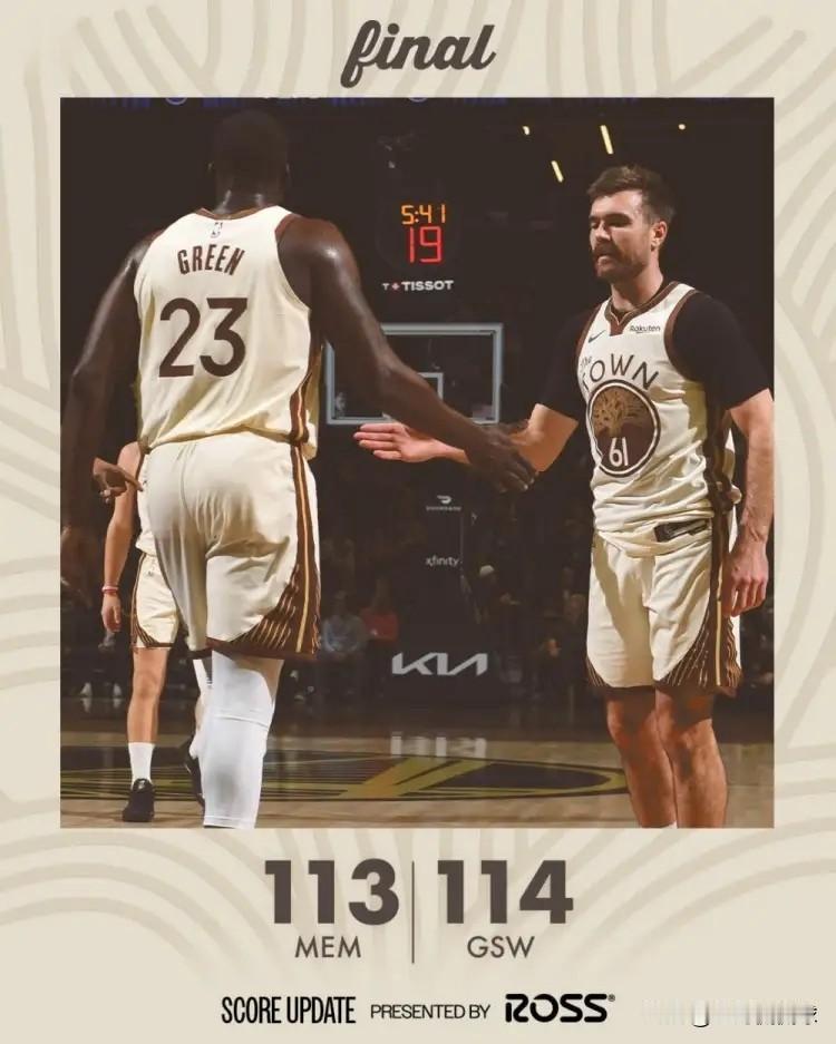 勇士官方真是太荒谬了!在今天勇士主场以114:113险胜灰熊的赛后,勇士官方在社媒上晒出了一张赢球海报,让人感到非常意外的是,此役疯狂送出7次失误的追梦格林竟然携手斯潘塞成为了赢球海报的封面人物。 在我看来,勇士官方的行为可谓是非常的荒谬,因为以追梦格林在本场比赛中的表现来看,他完全不配登上球队的赢球海报。勇士之所以能够赢下本场比赛,其中一个重要原因就是追梦格林在第四节比赛中被弃用。