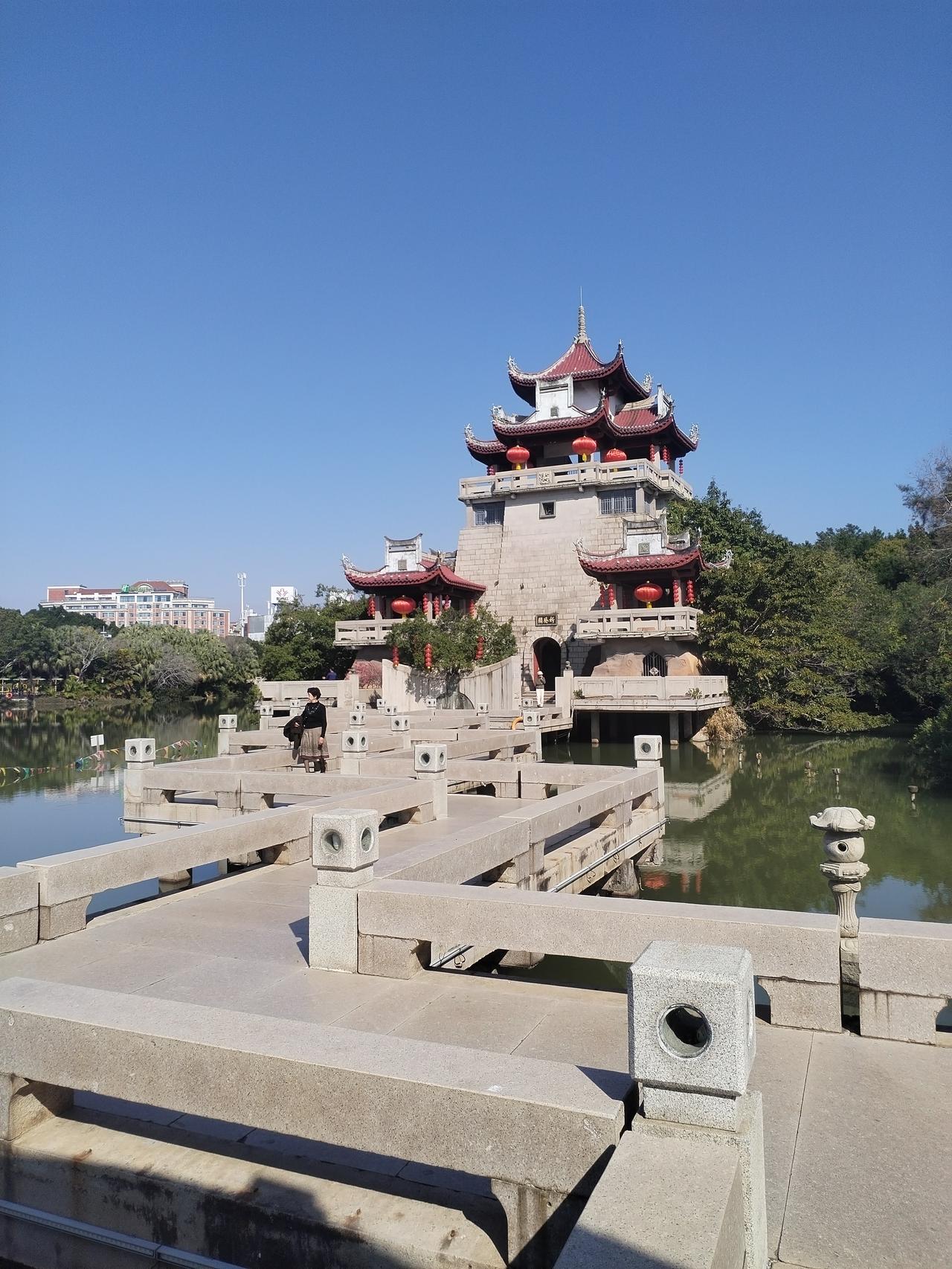 今天是北方小年,打算去公园逛一逛。 据说泉州市东湖公园,是城市中心的花园,风景优美,特别是在白梅绽放的季节里,前去赏梅打卡的人们络绎不绝。 早上,乘车来到了东湖公园。公园湖水清澈,在阳光的耀下,波光粼粼。湖周围被绿树环抱,亭台楼阁,飞檐翘角,非常别致独特,很具有闽南文的特征。 白梅花开,虽然已过了繁花期,但是还有些白梅花依然鲜花盛开,芬芳馥郁,淡淡清香扑鼻,显示出迷人的魅力。 围绕着东湖公园转一了一圈,用手机拍下了一幅又一幅美景,留下美好回忆。