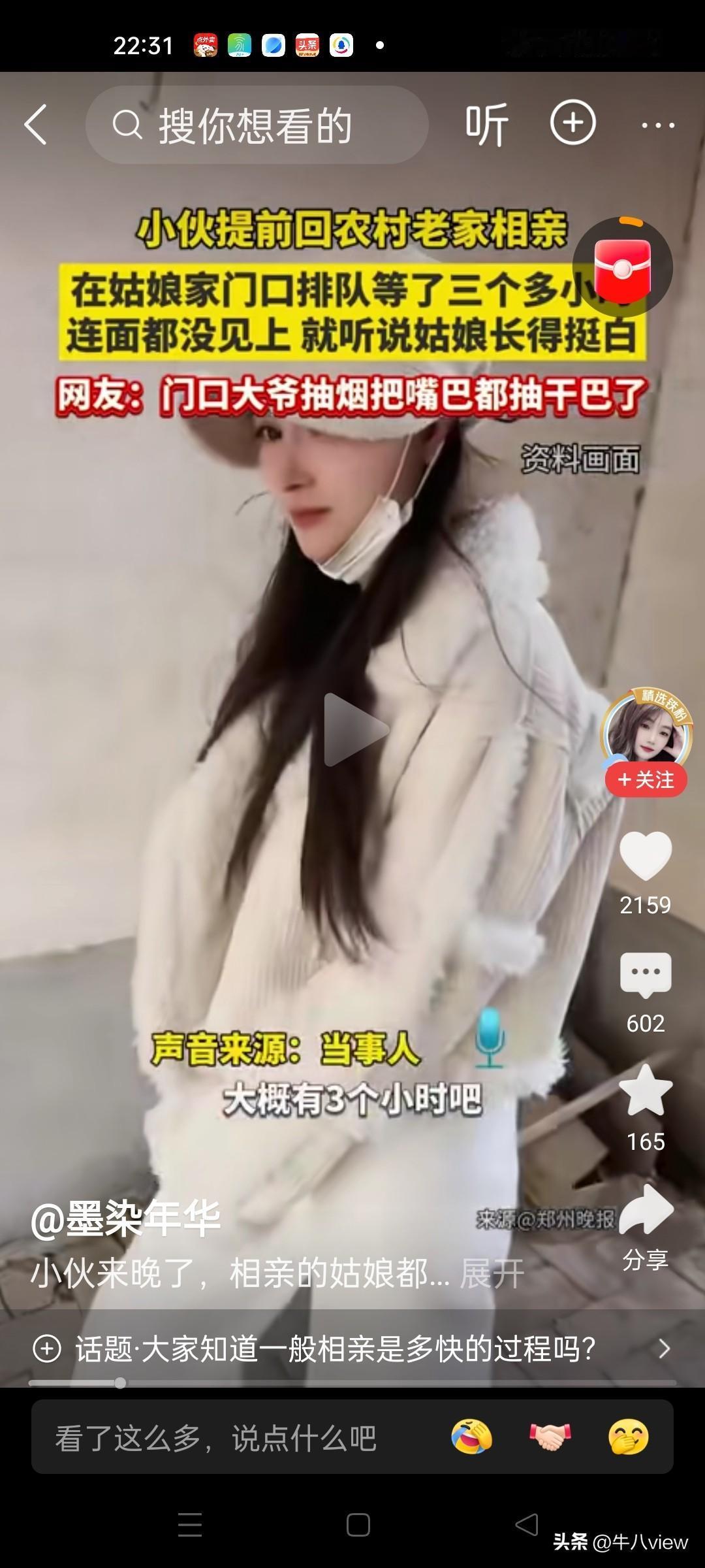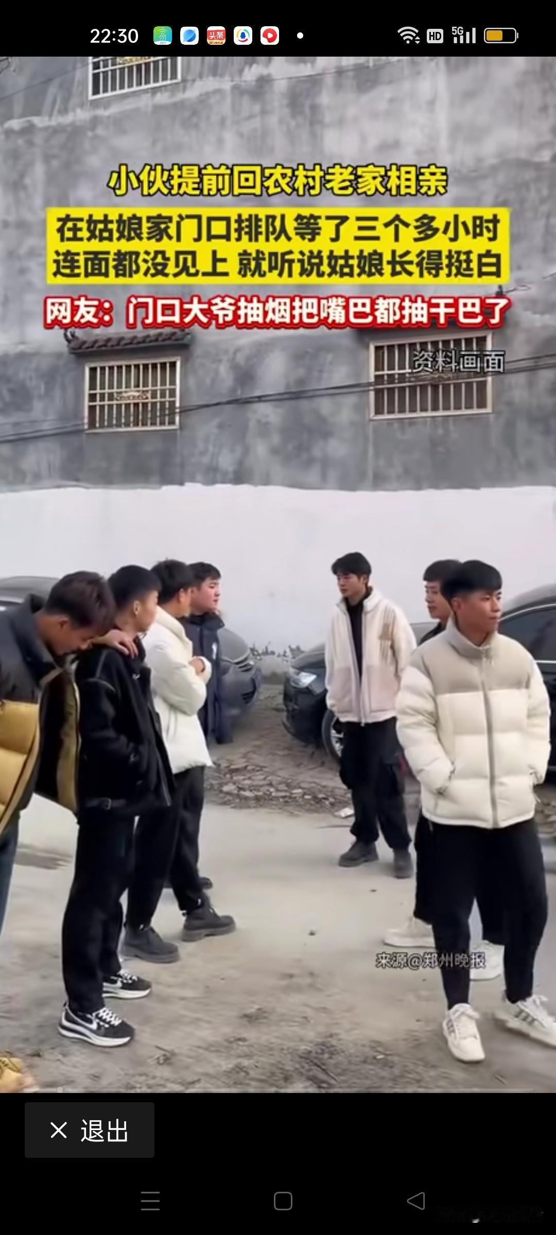 男子吐槽回老家农村相亲,在女孩家门外排队3小时都见不到女孩面,相亲相了一个寂寞! 春节临近在外打工的年轻人陆陆续续回老家团聚了,但单身年轻人回家几乎会遇到同一个问题,那就是催婚,安排相亲便是一件最重要的事,无法忽略也躲不掉。被安排相亲也是无奈中的无奈。 既然在外打工没有领回来女朋友,那就在农村或者十里八乡找一个同地区的老乡能结婚也是理想的结果,毕竟同一地方的人生活习惯,方言,风俗习惯相近更好相处。所以回老家相亲自然就成了必选项。 但是过分的是农村排队挂号相亲的这种方式挺狗血的,一个单身女孩一天要见很多个男士,十里八乡亲戚介绍的,媒婆推荐的,相亲就像走马观花一样,更像医院看病的一样,排队三小时,相亲三分钟。 几十个人见完了,家里礼品收了一大堆,究竟对哪个小伙更中意恐怕姑娘也对不上号谁是谁了。 要我说相个屁亲,回老家就好好的陪家人过个好年。春节完了回单位好好赚钱,有钱了啥样的女友找不到,何必几十个人同时相一个女孩,这跟拍卖会有啥区别了!没有一点感情基础这种婚姻有啥意思!这无形中就是让女方家坐地起价抬高自己身价,让她觉得更有优越感。 如果是我,宁可单着我也不会凑这热闹,纯属浪费感情!大家觉得呢?