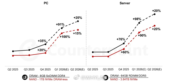 内存价格飙升90%关键是会带动一整条产业链涨价,不止电脑,还有接下来的中端机、旗舰机全都得跟着涨。