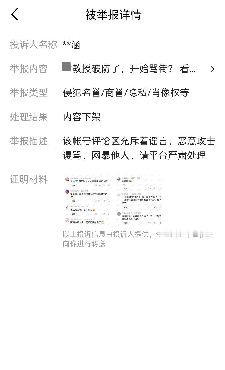 一位天天嚼别人舌根,却在网上发文说嚼舌根的人都是文化层次低的教授,把我的文章给给投诉下架了!投诉的理由挺奇葩:该账号评论区充斥着谣言,恶意攻击谩骂,网暴他人,请平台严肃处理! 今天早上我偶尔看到一位教授的文章,他说“有些在互联网上嚼舌根的人,大多数是低收入、低学历和低认知的人,他们却喜欢对优秀的人评头品足……” 我觉得这位教授说得挺有道理啊,就截图配上文字,发表一篇文章,评论一下现在互联网上的戾气,有些人实在没啥评论的就攻击别人不结婚、不生孩子等等现象。 万万没想到啊,这位教授这么敏感,没一会直接给我投诉下架了 所以,有时候,网友们的评论也不是全无道理的。 这一点来说,确实还是老胡的格局更大一些、更加玩得起!