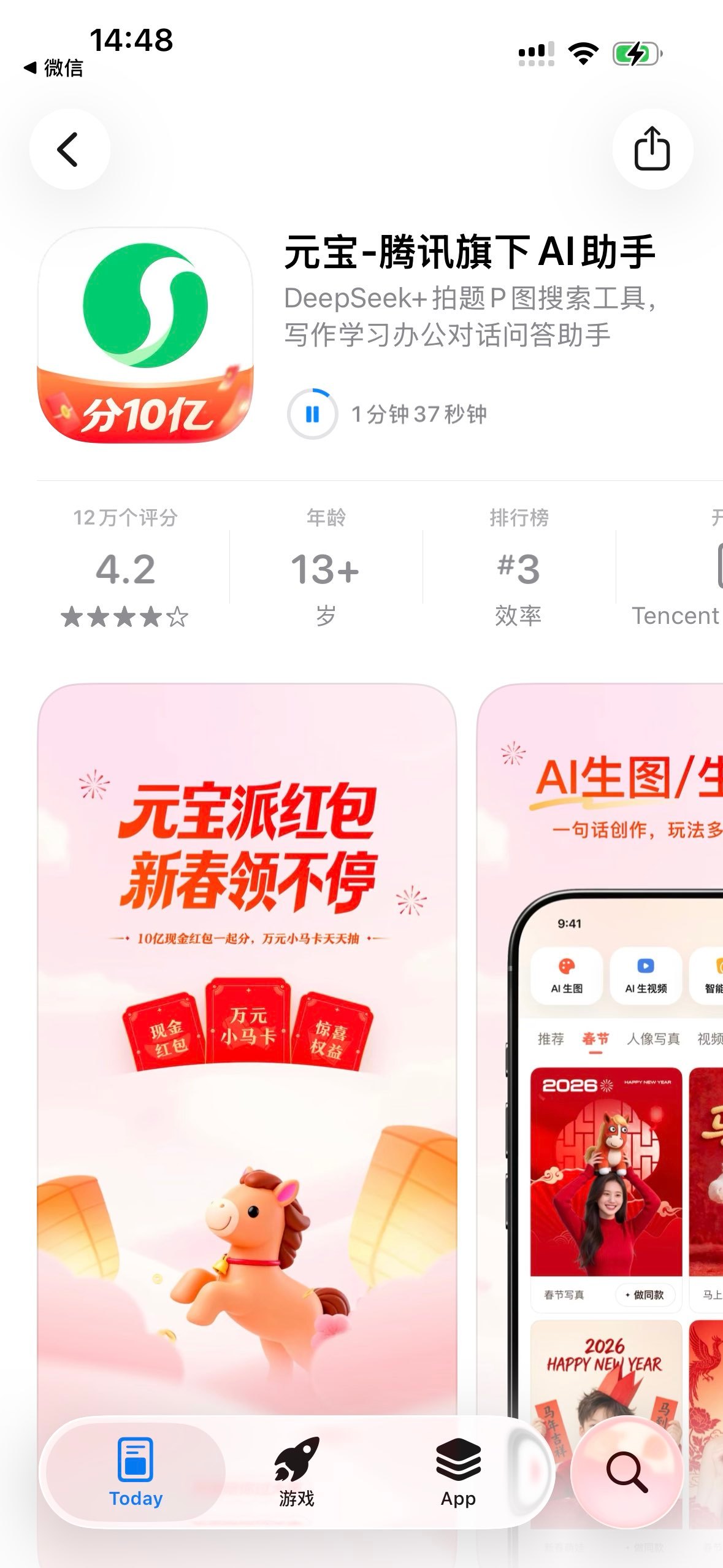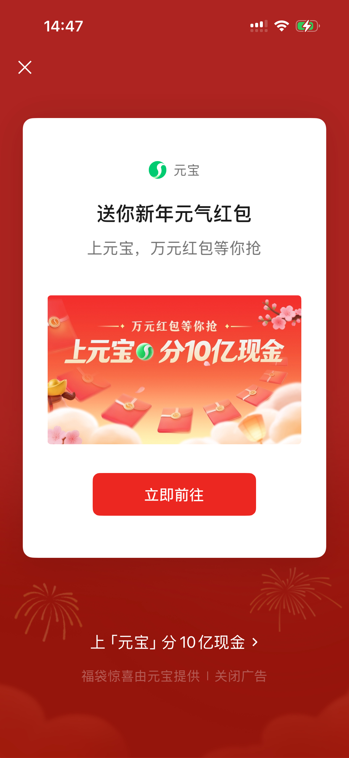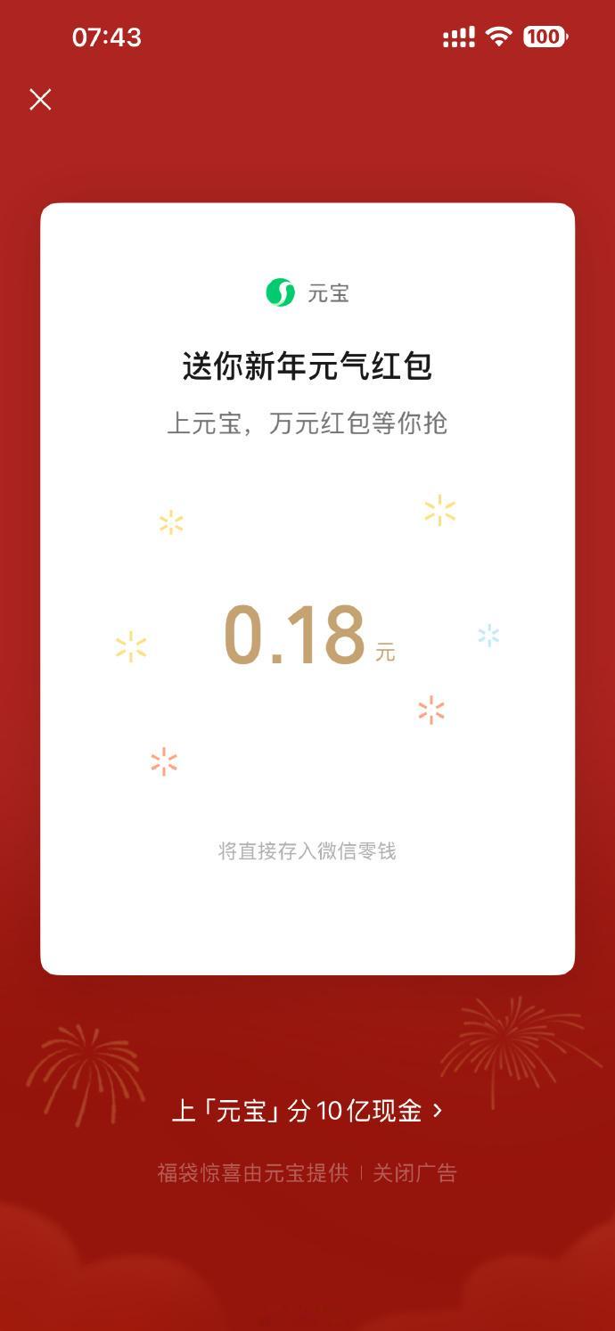 元宝又来瓜分10亿红包了,微信直接输元宝就掉红包福袋,不过点进去还得下载才能参与