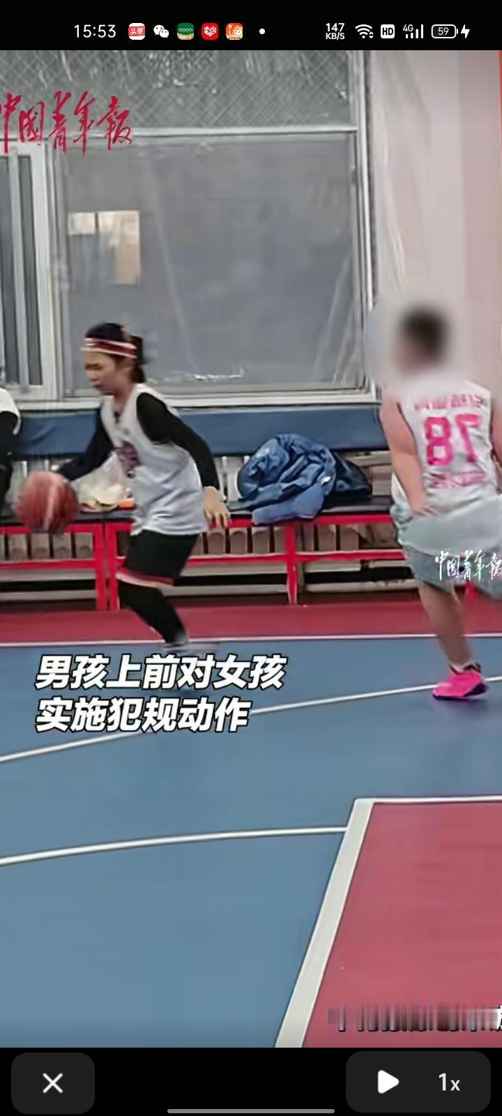 2月9日,吉林长春。男孩在比赛时用犯规动作,把女孩推倒在地,教练看到后立即上前批评教育。他向裁判示意被侵犯,但裁判并未响哨,示意比赛继续。随后,他向女孩做犯规动作。 男孩爸爸表示,后续无任何冲突,孩子没有受伤,男孩已向女孩道了歉。