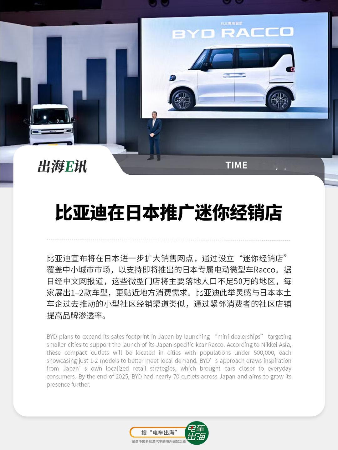 【出海E讯】比亚迪在日本推广迷你经销店