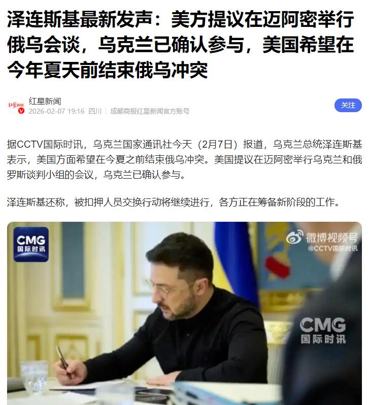 2月7号,乌克兰总统泽连斯基说了个大事:美国让乌克兰和俄罗斯的人,去美国迈阿密谈和平,乌克兰已经答应了。而且美国催得特别急,非要在今年六月前,把这场打了快四年的仗停下来。还有个新鲜事,特朗普总统不让外交官去谈,反倒让军方的将领出面,这里面全是门道。 先说说这仗的情况,从2022年2月开打,到现在快四年了,俄乌两边都耗得扛不住了。 乌克兰的城市被打得不成样子,老百姓没地方住,当兵的死的死、伤的伤,国内的物资、当兵的补给,全靠美国和欧洲接济才能撑着。 俄罗斯也没好到哪去,被西方国家制裁了好几年,经济越来越差,虽说在战场上占点优势,但长期这么打,也耗不起。其实两边都想停火,就是一直没找到机会和台阶。 这次美国主动撮合两边去迈阿密谈判,还急着定六月前的期限,根本不是真心想让俄乌和平,核心就是为了美国自己,尤其是特朗普想拉选票。 大家都知道,今年11月美国要搞选举,特朗普作为现任总统,得拿出点像样的成绩,促成俄乌停火,就是他手里的一张好牌。 美国为啥催这么急?因为六月之后,特朗普和他的团队,所有精力都要放在选举上,根本没心思管俄乌的事。 而且现在美国国内,很多老百姓都反对再给乌克兰送钱送武器,大家都说,美国自己的日子都不好过,物价一个劲涨,很多家庭连生活费都紧巴巴的,没必要把纳税人的钱,大把大把花在国外的战争上。 特朗普心里清楚,不尽快结束冲突、停止援乌,肯定会失去更多选民的支持。 再说说特朗普的新做法,不让外交官谈,让军方将领出面,这也不是随便安排的。以前谈外交,美国都是让外交官上,因为外交官懂规矩、会说话。 但这次不一样,俄乌打了四年,本质就是一场军事冲突,谈的核心都是战场局势、兵力多少、领土归属这些和军事相关的事,军方将领比外交官更懂这些。 谈的时候能拿捏好分寸,也能变相给俄乌施压,让两边不敢敷衍。而且特朗普也想彰显自己做事果断,不像以前的外交官那样拖拖拉拉。 泽连斯基之所以立马同意谈判,也是没得选,身不由己。这四年,乌克兰全靠美国和欧洲的援助,才能勉强和俄罗斯对抗,要是美国停了援助,乌克兰根本撑不下去,最后只能战败。 泽连斯基也怕,美国为了选举,私下和俄罗斯达成协议,损害乌克兰的利益,所以他同意去谈判,也是想亲自盯着,尽量争取对自己国家有利的条件。 可能有人会问,这次谈判能成吗?六月前真能停火吗?说实话,难度很大,能不能成还是未知数。 最关键的就是领土问题,俄罗斯占了乌克兰的一部分领土,肯定不愿意放弃,而乌克兰也一直说要收回所有领土,这一点谈不拢,就没法和平。 而且现在俄乌在战场上还在打,两边都想多占点地盘,为谈判增加筹码。俄罗斯的态度也很明确,不会接受不合理的条件,不会放弃自己的利益。 这场打了快四年的战争,受苦的还是两边的老百姓,大家都盼着和平。但和平不是一次谈判就能实现的,能不能成,还要看俄乌两边能不能各退一步。 至于六月前能不能停火,我们只能慢慢看。但不管怎么说,能坐下来谈,总比一直打下去强。
