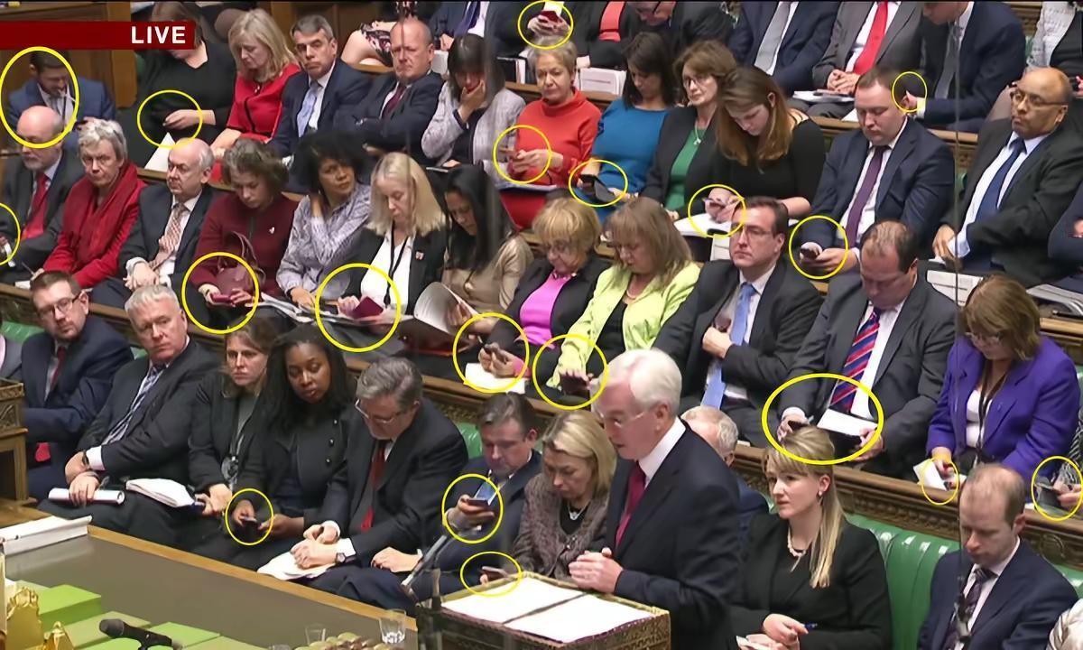 某英某国议员开会时使用手机的现状。原来大家一个样啊😛