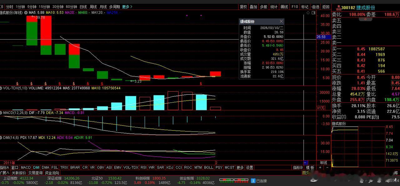 收盘价:8.29元。涨跌幅:995%。股票连涨:7天。