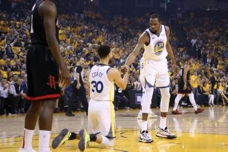 说到下跪,库里给詹姆斯跪过,给裁判跪过,给杜兰特跪过,给詹蜜也跪过。