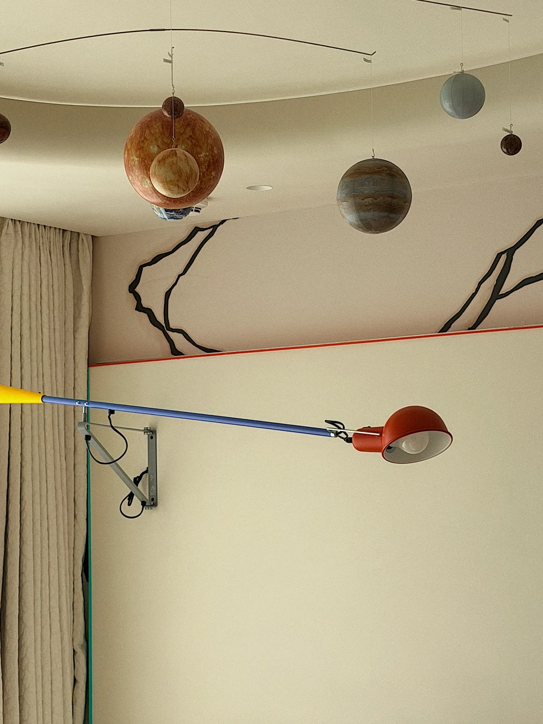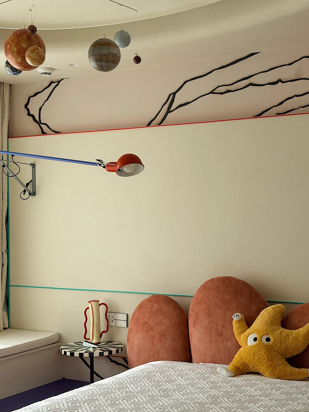 还有那盏星球造型的吊灯,一打开就像把宇宙搬进了房间