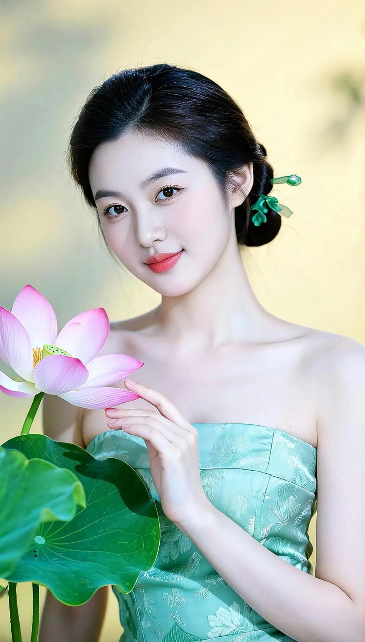 你身着一袭月华流光的旗袍,立于亭台水榭间,宛若从古画中踏步而来的仙子。那衣料如云