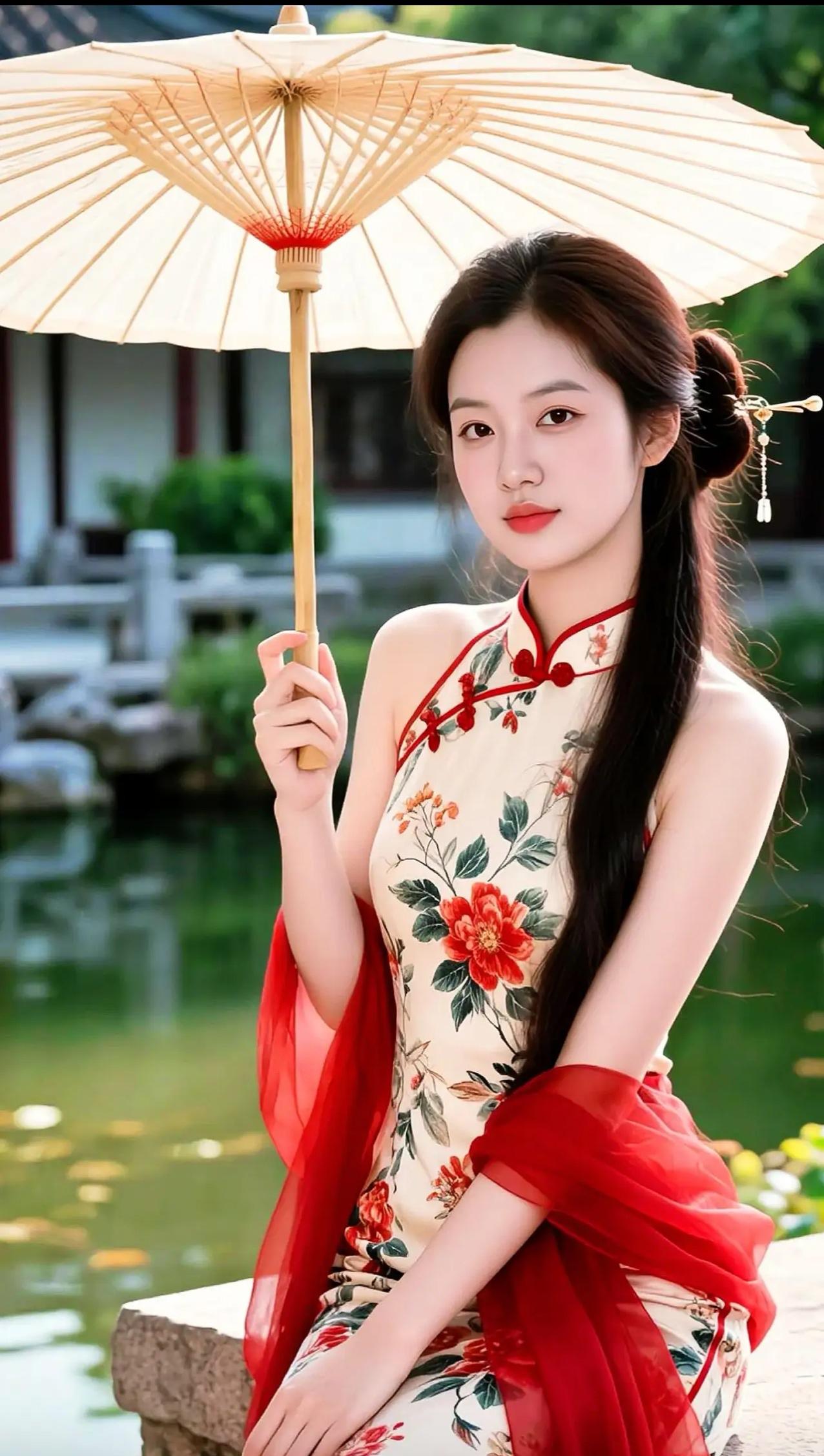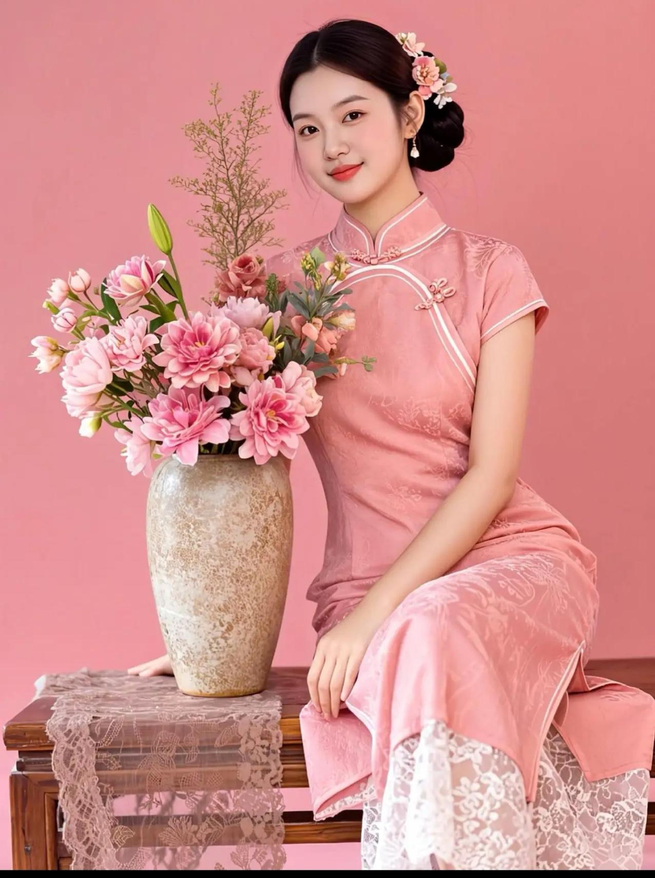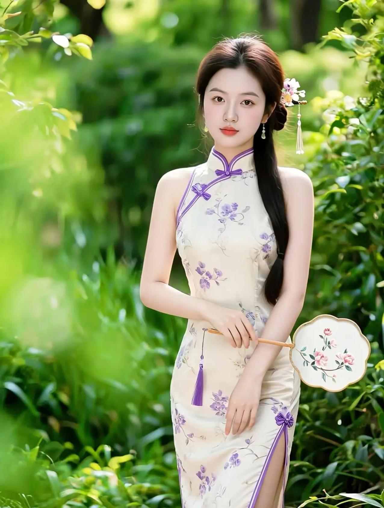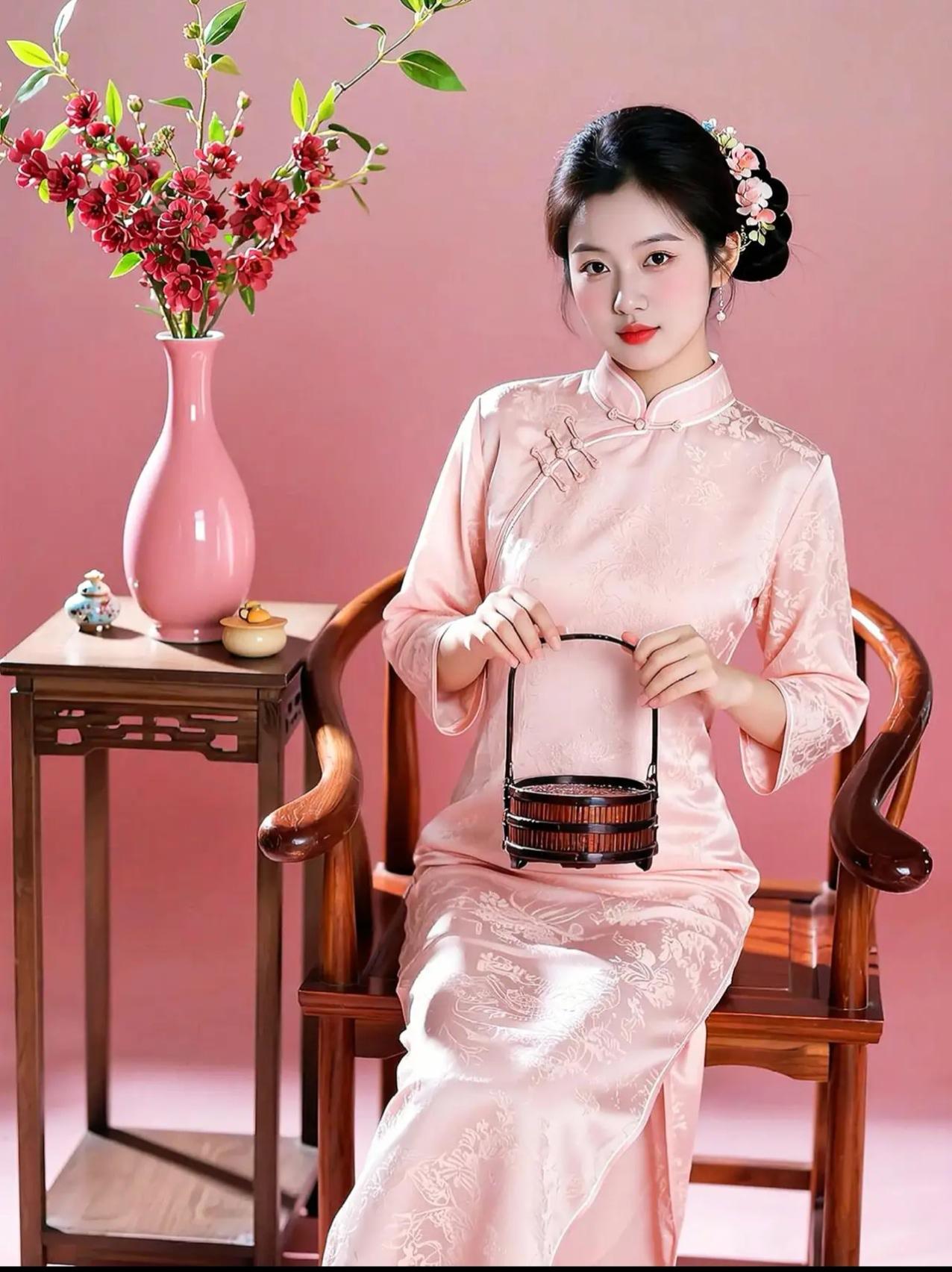 这组照片展现了一位年轻女性在不同场景中演绎新中式旗袍美学的系列写真。她身着多款设计精巧的旗袍——从淡蓝刺绣、鹅黄蕾丝到粉紫晕染、正红提花,每一套都融合传统纹样与现代剪裁,搭配珍珠、玉镯、发簪等配饰,尽显东方女性的温婉与雅致。 背景涵盖茶室、庭院、花墙与古典窗棂,光影柔和,氛围静谧。她或执扇轻倚,或执壶斟茶,或持花浅笑,姿态从容,眼神含情,仿佛将“旗袍是流动的诗,女子是静止的画”这一意境具象化。整体画面不仅呈现服饰之美,更传递出一种“慢生活、重仪式”的东方生活哲学。