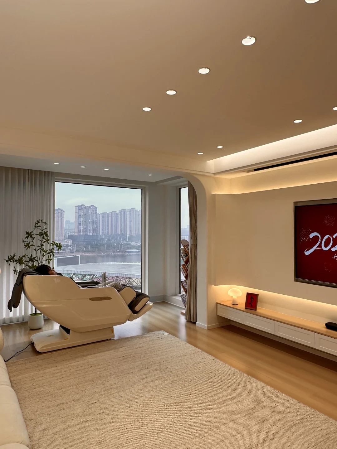 新家入住,套内 108㎡极简原木风,客餐厅一体的设计里,最亮眼的 C 位,是老公严选给我爸妈的新年礼物 —— 荣泰 A52Max 梦想家按摩椅!