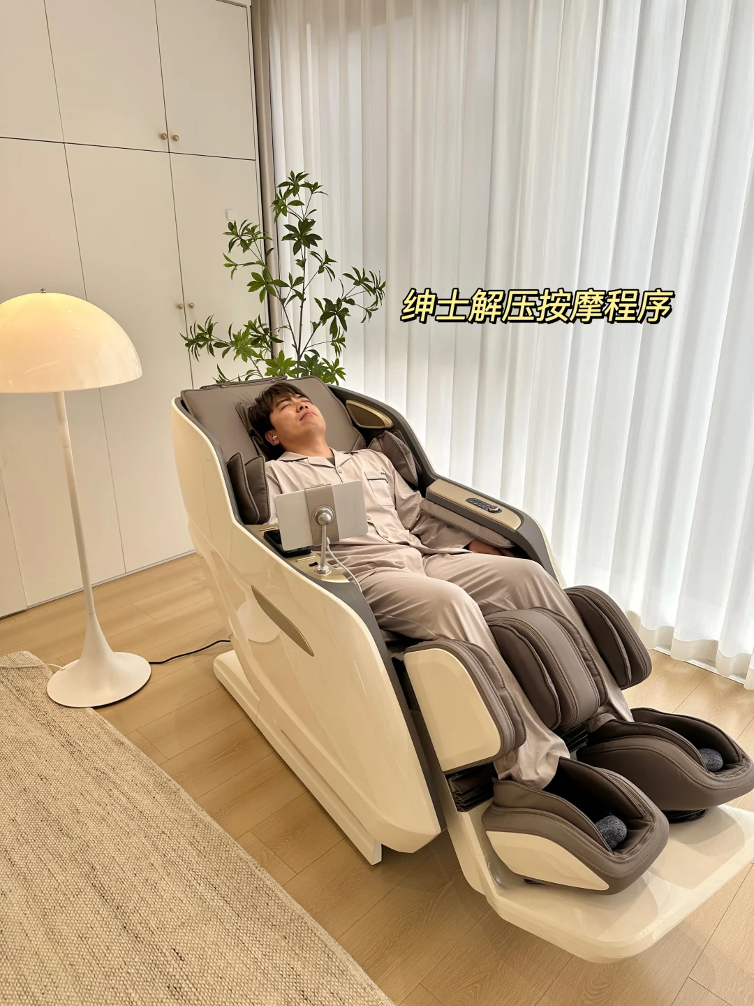 自带22套按摩程序,像肩颈不适的,就可以选择肩周改善,一套肩颈揉捏下来,僵硬和疼痛都缓解了,还有女神纤体模式,我也跟着沾光享受~ 因为经常练瑜伽和普拉提,身上会有酸痛感,它能充分的拉伸舒展全身,下课回家换上一套居家服躺下先享受20分钟。这么多程序还能根据APP持续更新,语音操控,扶手按键,怎么用都方便~