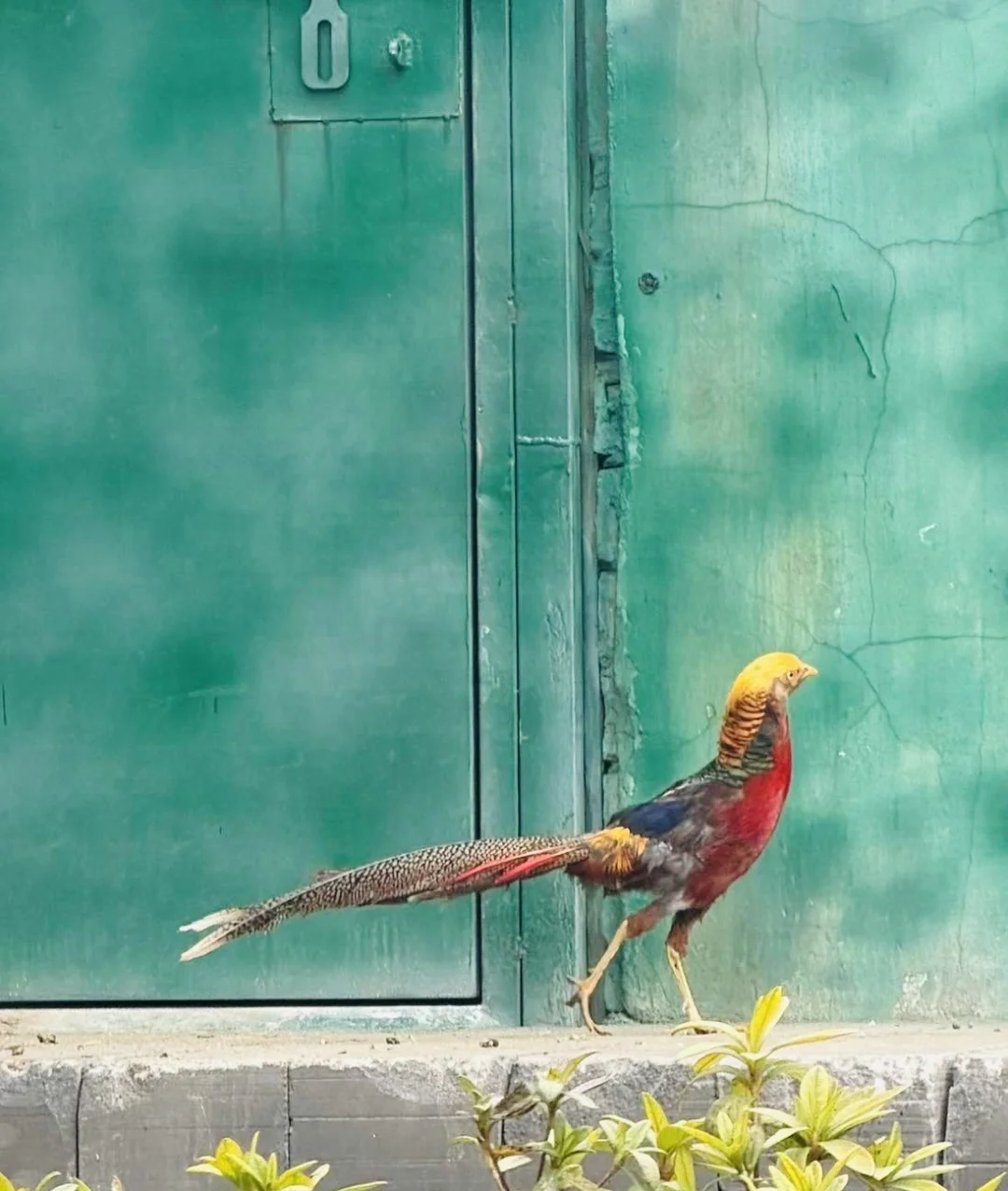 红腹锦鸡拖着“黄金裙摆”散步
