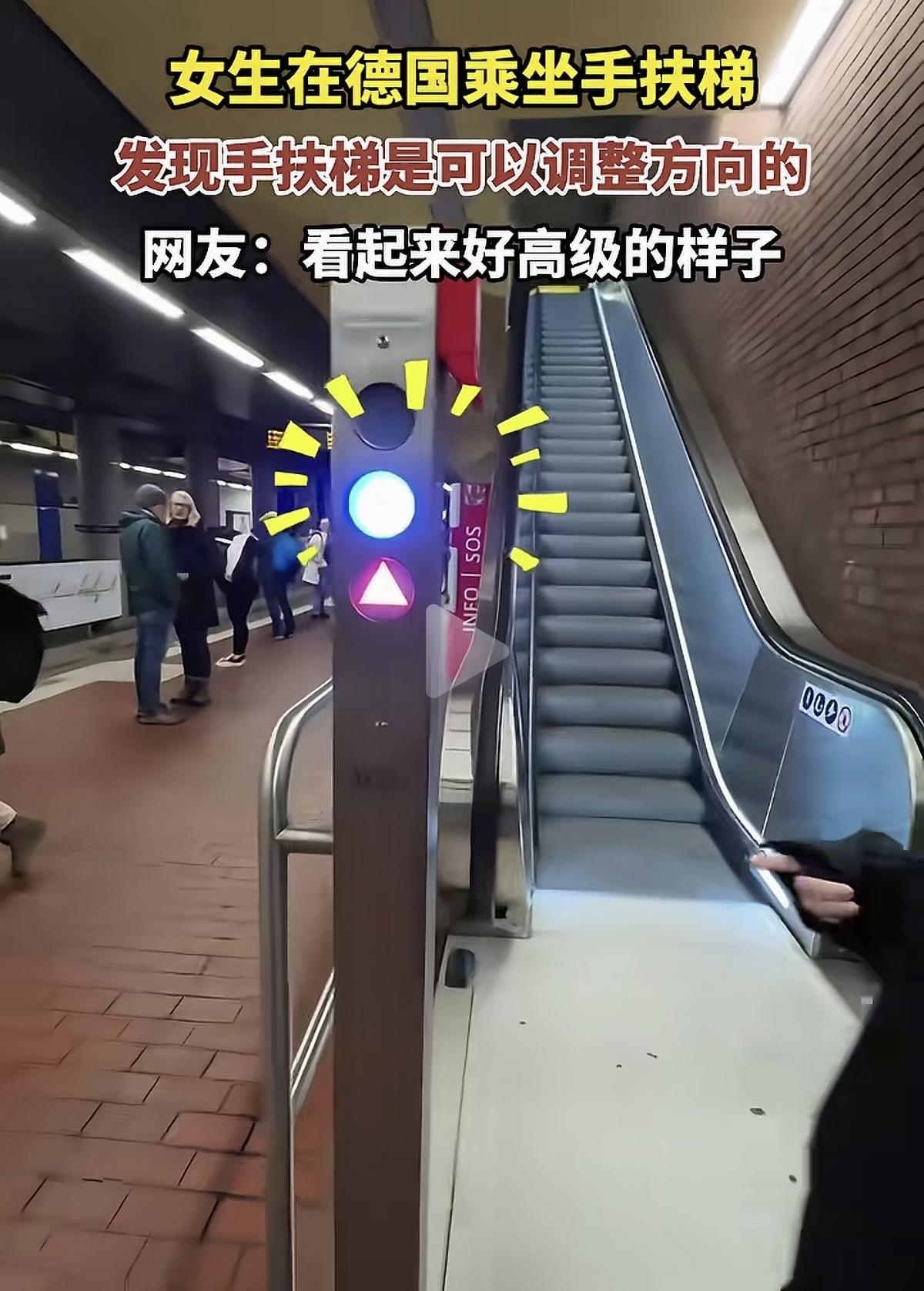 你说他穷吧,他却装了一个手扶梯。你说他不穷吧,可他只装了一个手扶梯。这种手扶梯,本来就可以双向运行的。就看你怎么设置电梯运行的上下程序。 在国内,这种公共场合,手扶梯一般都是有两条的。一条向上运行,一条向下运行。旁边还会设置楼梯,想走路就走楼梯。 像这样,就安装一条手扶梯,一会向上,一会向下,运行效率太低了。行人等候的时间也会过长。 像德国的这种手扶梯,不太实用,效率太低。所以,出国前,最好是去县城,或者大城市,生活一段时间,涨涨见识,再出国。