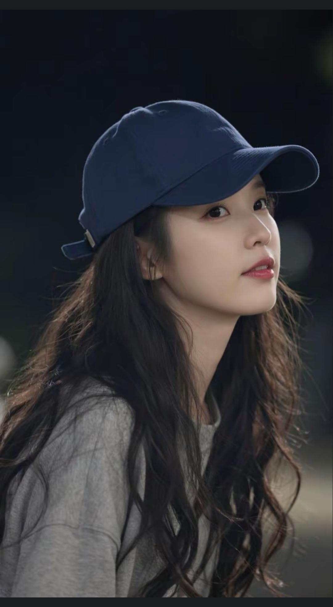 青春洋溢的少女,蓝帽灰衫,清新自然。