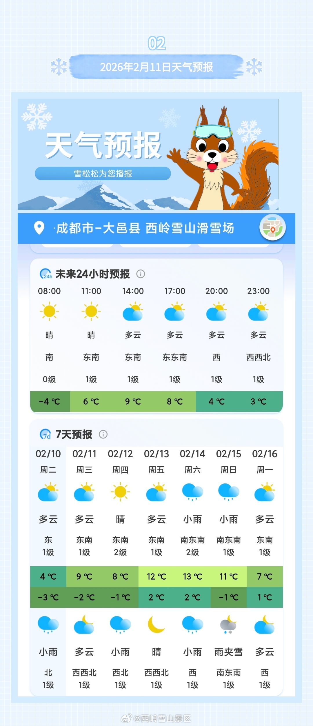 西岭雪山景区2月11日(周三)气象预报#西岭雪山##西岭雪山天气#