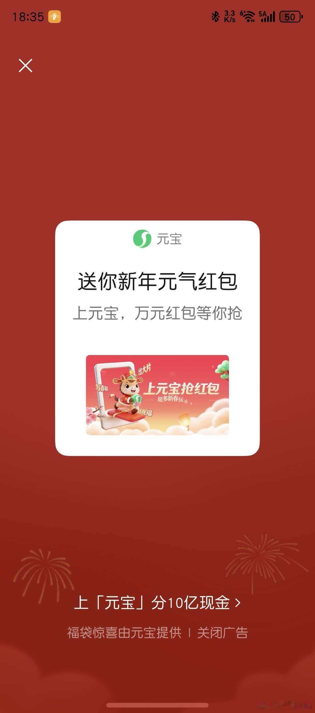 元宝微信发红包有的人收到了红包,有的人只得到了一个广告页面,而我就是那个人!!!!