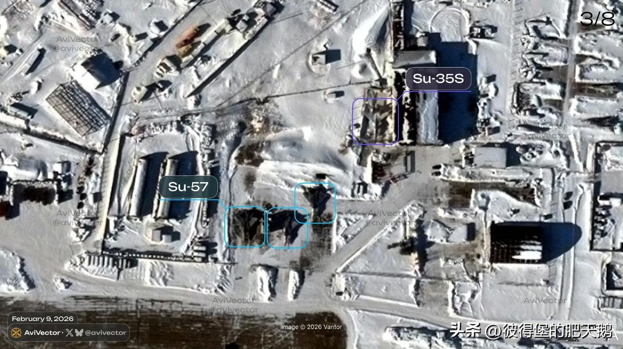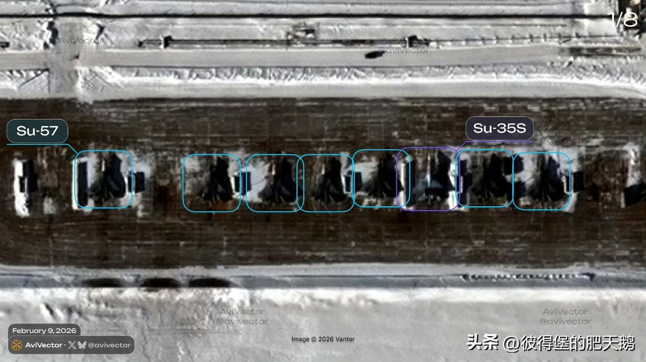#俄乌冲突# 这组卫星拍摄的照片显示,俄罗斯联邦阿穆尔河畔共青城东北部的泽姆吉空军基地,俄空天军歼击航空兵第32团的15架苏-57第五代多功能战斗机。 该空军基地部署了 15 架苏 - 57战斗机、18 架苏 - 35S战斗机、3 架米格 - 31BM高空截击机和 2 架米 - 8(“河马”)直升机。 #俄称若遭欧洲攻击将全面反击#