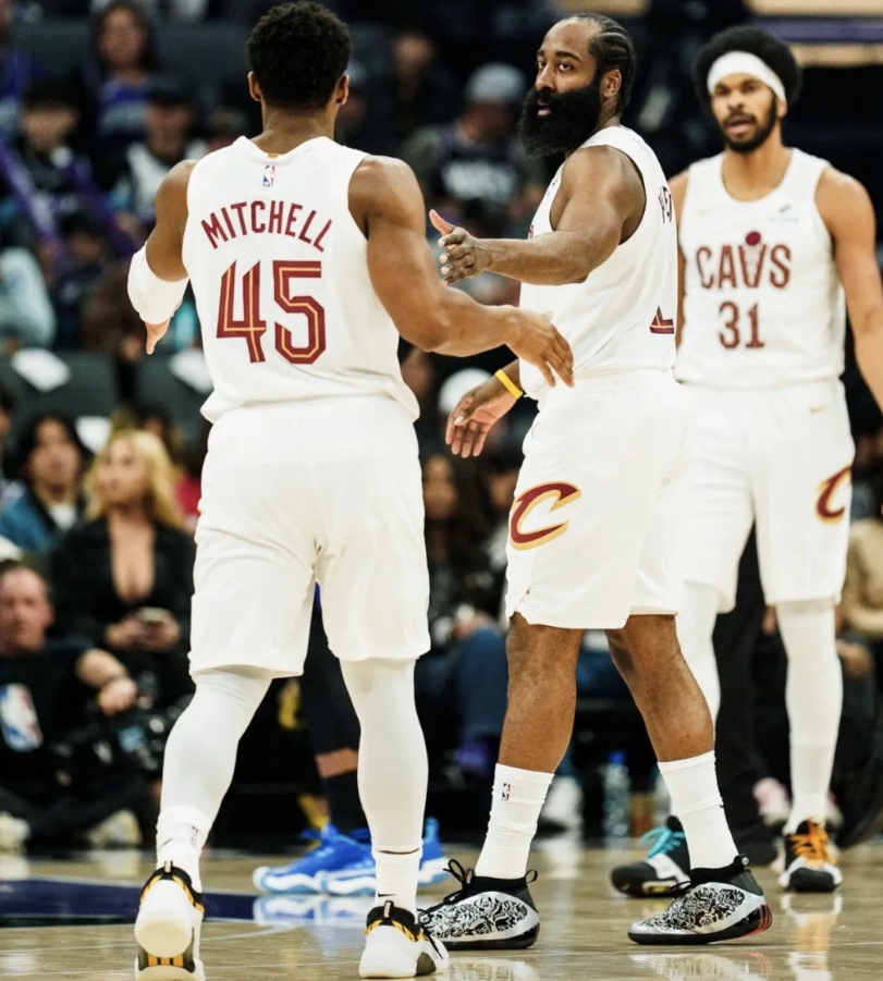 最后31.4秒!哈登弧顶接球,面对哈达威的近身贴防,哈登一顿炒菜后,标志性后撤步3分出手,球稳稳落袋,而且,他在没落地前,还被哈达威绊倒了! 只可惜裁判没有吹! 这一球,帮助骑士将比分追平为117-117,为随后米切尔的造犯规绝杀奠定了基调! 哈登加盟骑士的第二场,再次在关键时刻力挽狂澜,帮助球队连续第二场完成逆转! 仅仅第二场比赛,他与骑士的适配,已经足以改变本赛季联盟格局了!等到磨合完成,伤员莫布里和斯特鲁斯回归,想想这支骑士,会有多可怕!