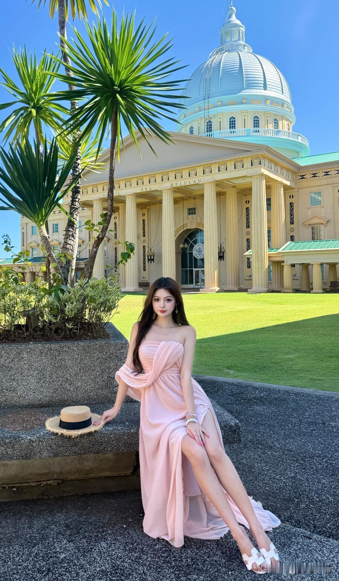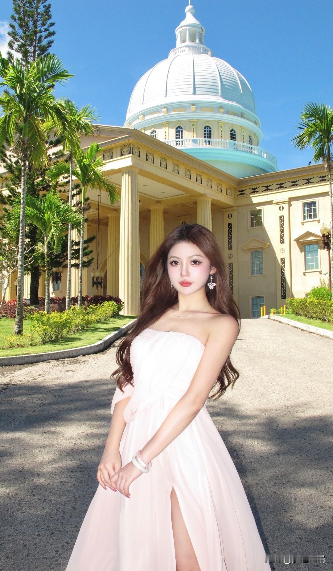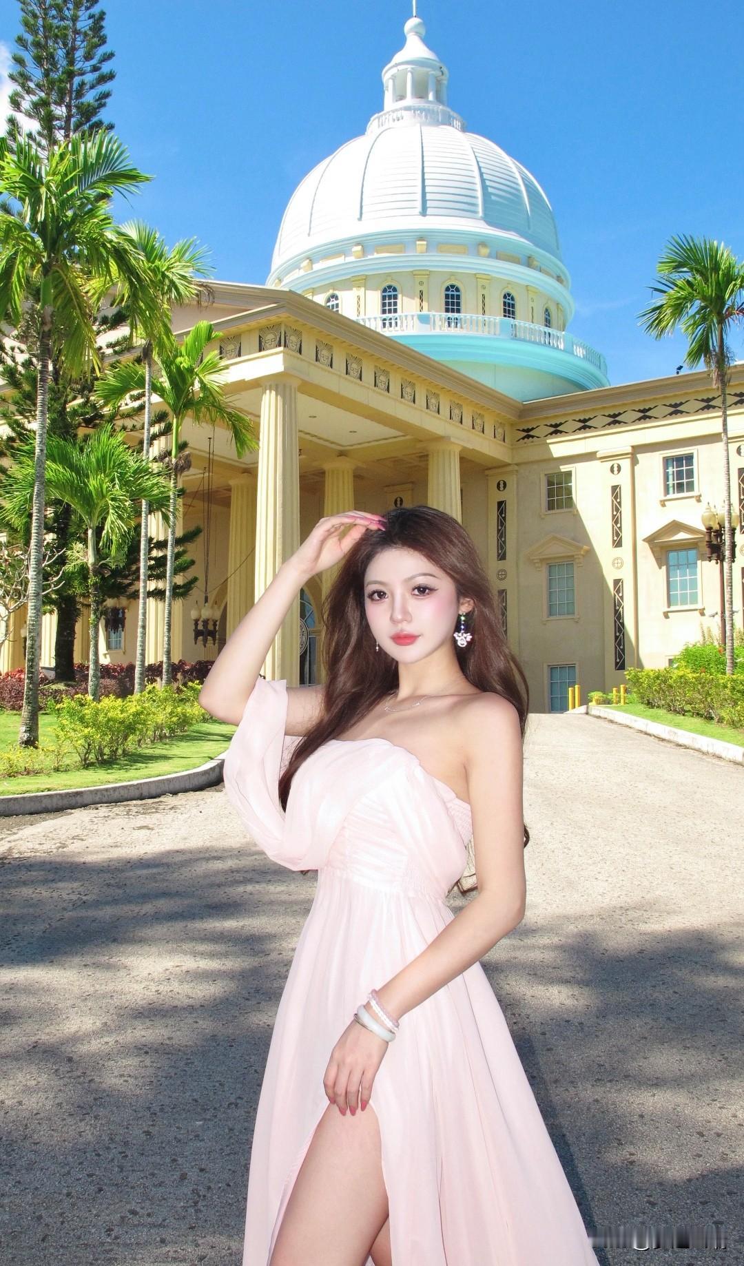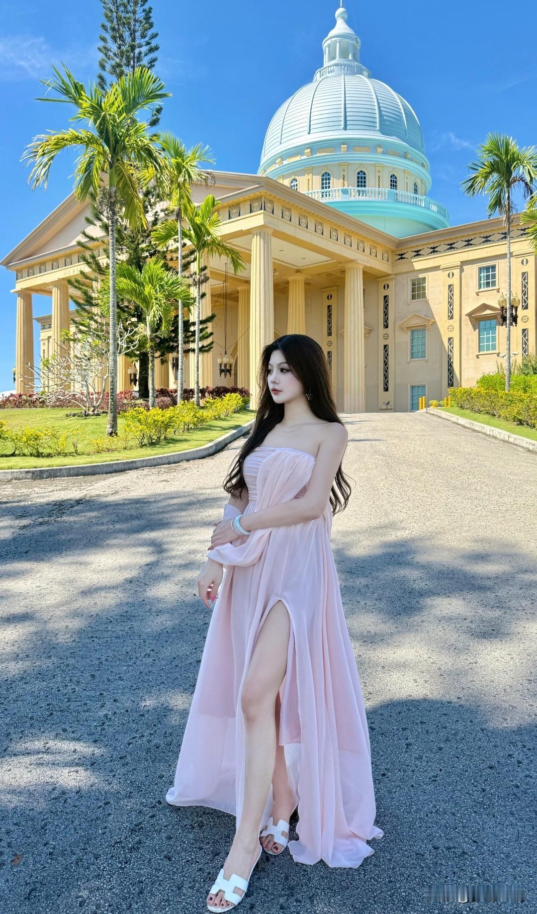 在梦幻的粉色裙摆中,感受古典建筑的浪漫气息。