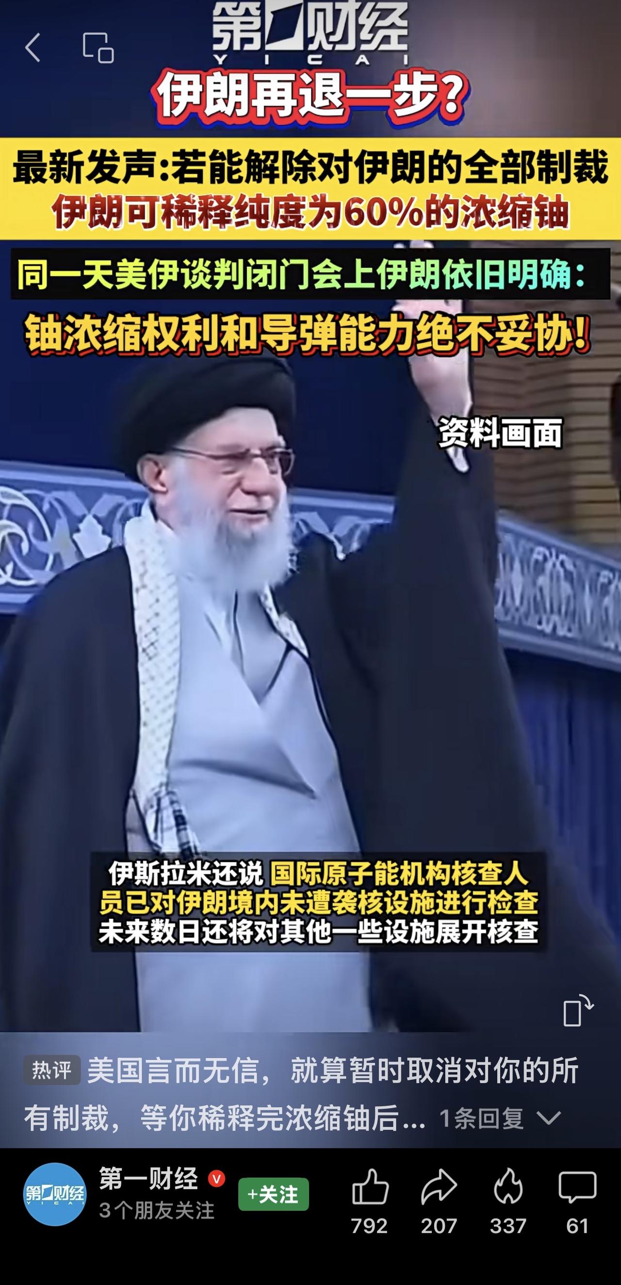 美伊第二轮谈判可能还是以间接方式进行。 美国建议其商船远离伊朗领海。 哈梅内伊呼吁民众团结让敌人绝望。