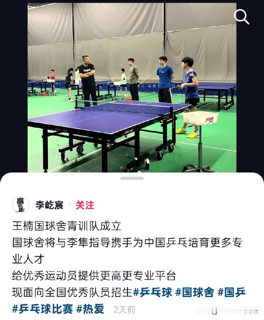 李爷爷和王楠合作上了,上阵父子兵,学艺师徒情。 当年李爷爷 能把王楠带成大满贯,现在李爷爷正式退休又去王楠的国球舍帮忙,继续培养青少年运动员。 王楠从十几岁开始跟着李指导,现在四十多了,跟在李指导身边的时间比跟在父母身边的时间都长。 乒乓球青少年队伍的培养,是有助于后备力量的储备的,在乒乓球越来越国际化的现在和未来,俱乐部青训队的成立对国家队输送后备力量都是非常重要的。