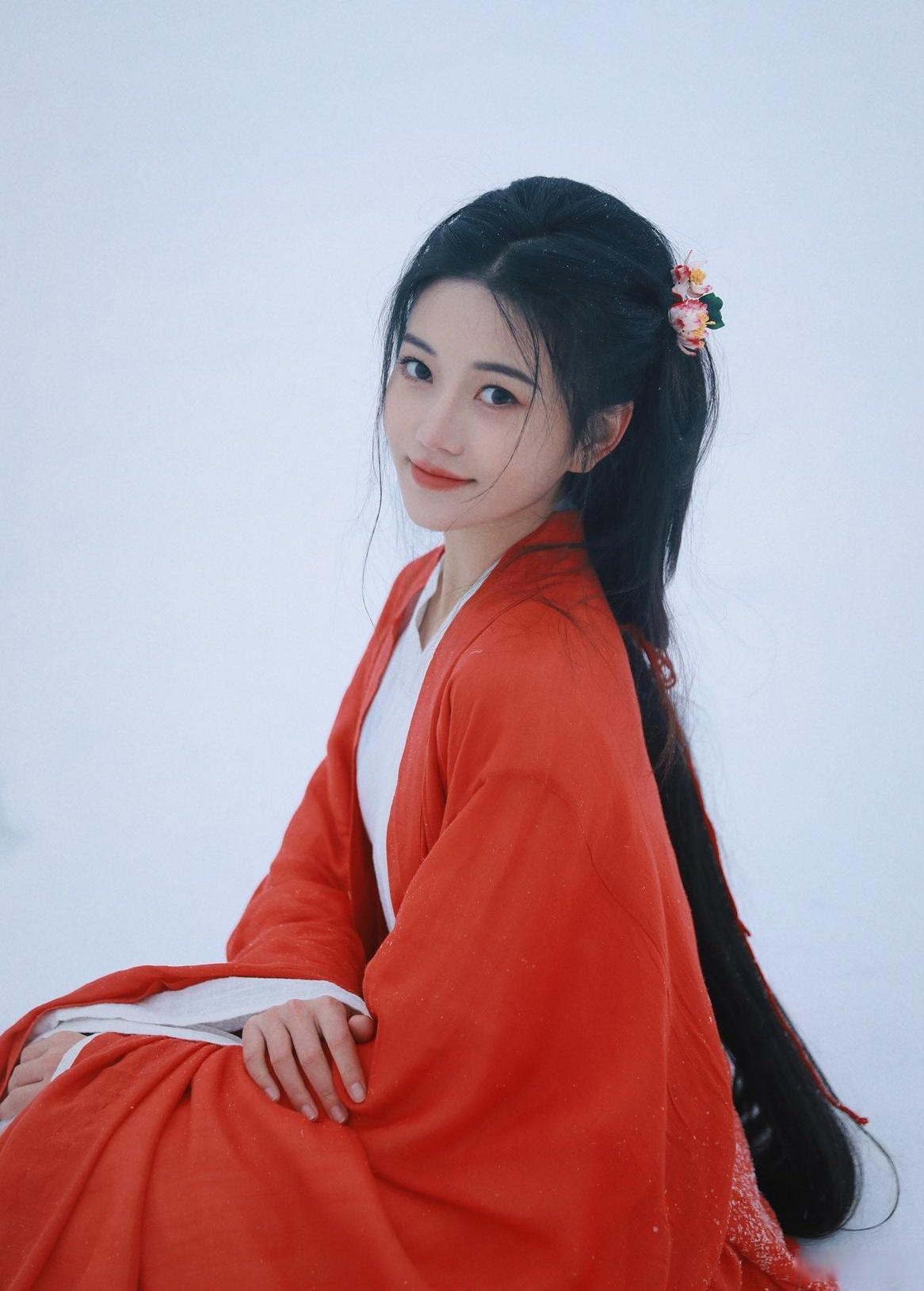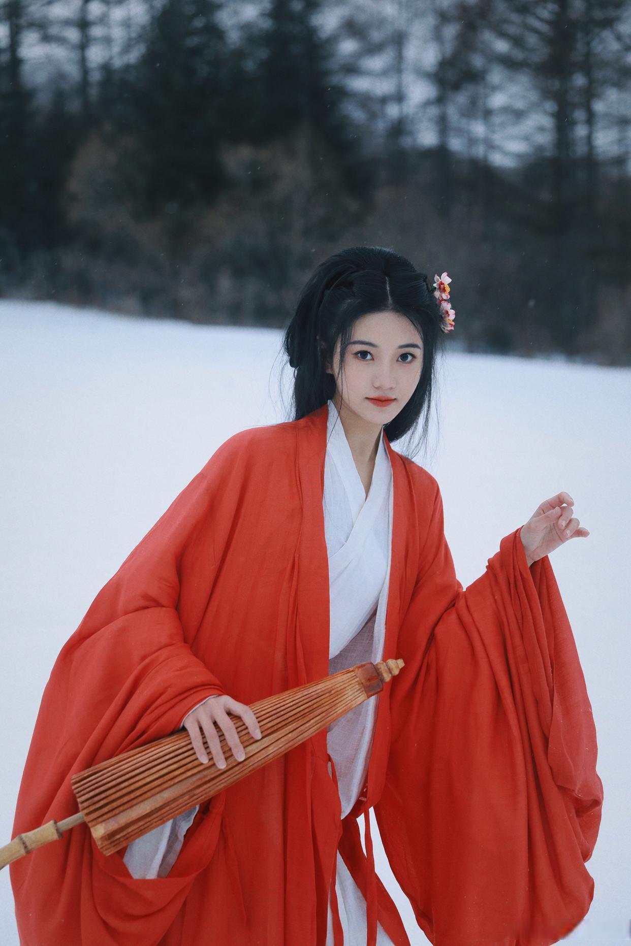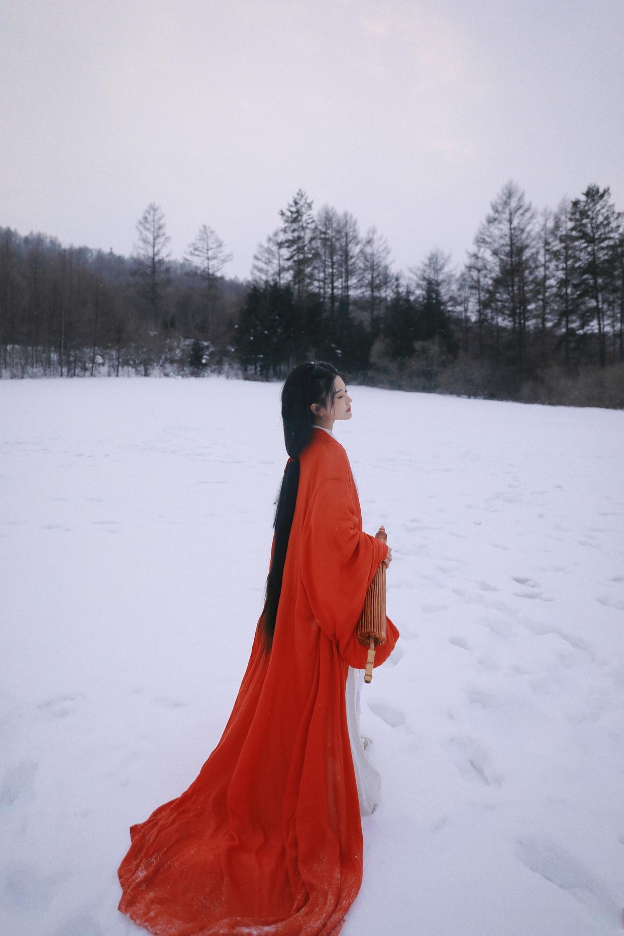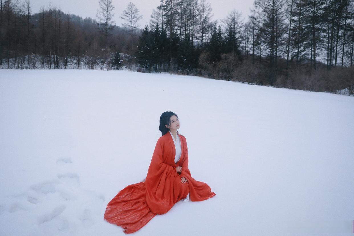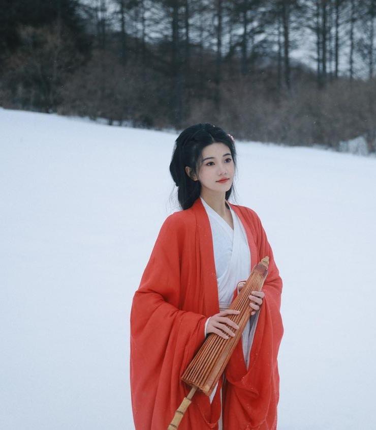 雪中美人倚,寒意入画来。
