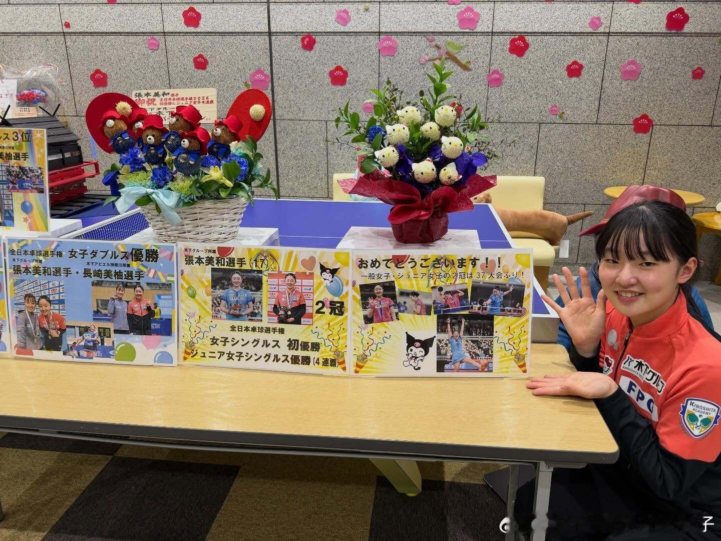 张本美和:再次由衷感谢所有为全日本锦标赛加油助威的各位。今年是我最后的机会,能够实现史上首次四冠王的成就,如果这份冠军能给大家带来哪怕一丝喜悦,对我而言便是无上的幸福。达成了目标——全日本锦标赛冠军,我真的无比开心,但此刻心中却有种奇妙的感觉。一直以来,我都很难做到“言出必行”,也因为无法报答一直支持我的人们而感到焦急。我曾烦恼究竟要怎样才能报恩,但如今再次深刻体会到,作为运动员,用成绩来证明自己,才是最好的方式。可这也是最难做到的……至今为止,我总在心里对自己说“只要每天努力就好”“就算没有结果,拼尽全力就行”,或许是在这样纵容自己、给自己设限。但我终于意识到,这并不是真正意义上的努力。去年是我和父母谈心次数最多的一年。我曾问过妈妈,如果梦想没能实现该怎么办。妈妈对我说:「只要你真心、全力朝着梦想努力,无论结果如何,妈妈都为你开心。」多亏这句话,我心里轻松了许多,同时也生出了强烈的决心:一定要用成绩来报答大家。当然,我也明白人生并没有那么美好,不可能实现所有目标。即便如此,我仍决定将“不留遗憾、拼尽全力”作为自己乒乓球生涯的使命与梦想。今后我也会为这个梦想继续努力。就算最终没能实现,我也要走出一段连过程都能让我骄傲地说「这就是我的人生」的乒乓球生涯。感谢大家读完我的心里话。篇幅有些长,最后我还有想说的话。今后我也会不忘初心、心怀感恩,带着责任感继续努力。「感恩与努力」——我会将这句话铭记于心,度过每一天。最后,衷心感谢从小时候起无论何时都一直支持我的木下集团的各位。能够每天随心所欲地训练,这份幸福我会格外珍惜,绝不视为理所当然。也衷心感谢Tamas、FPG、三丽鸥、Sunny Side Up的各位。一直以来,真的非常感谢大家。